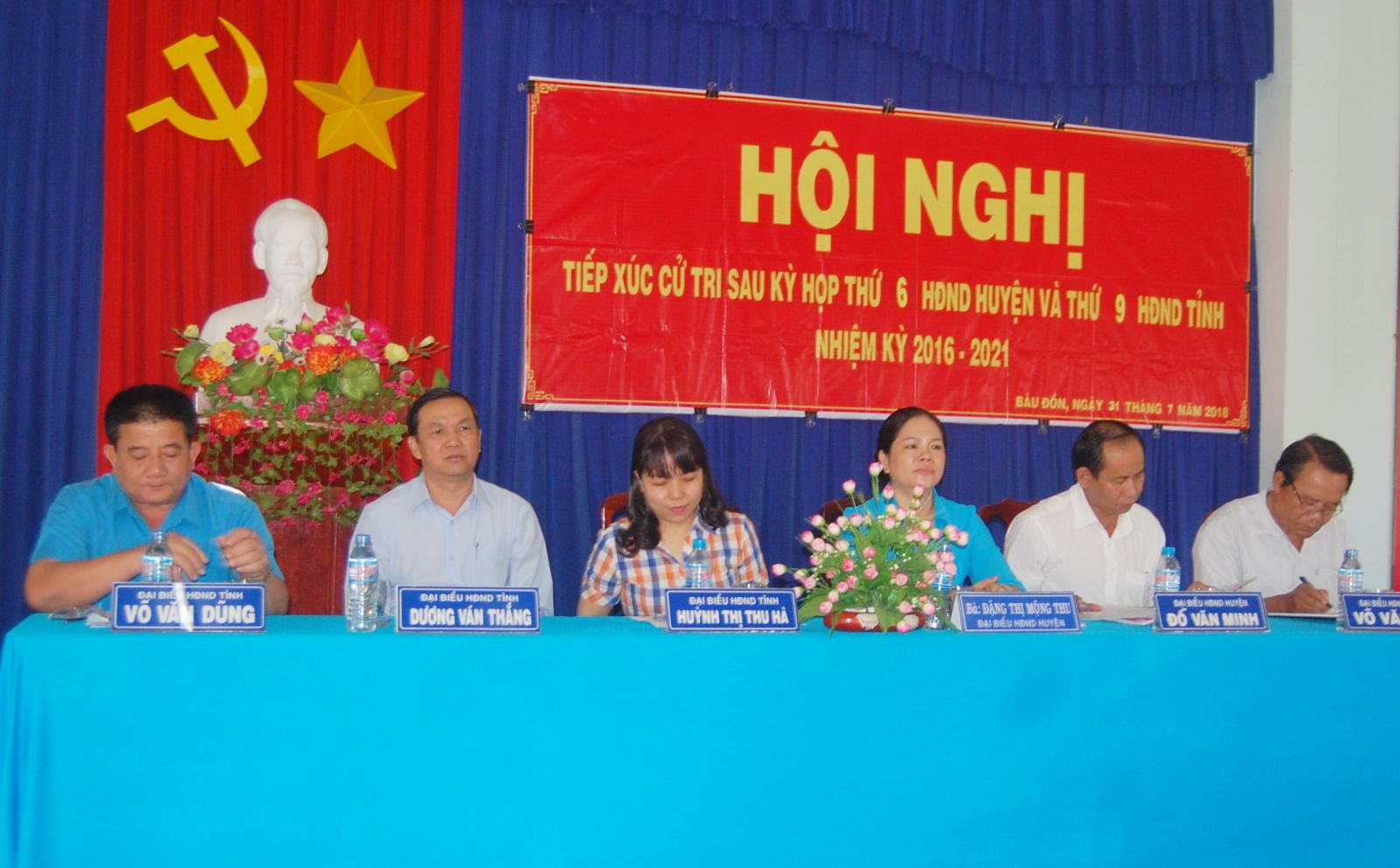 * Tổ đại biểu HĐND tỉnh gồm: ông Dương Văn Thắng- Phó Chủ tịch UBND tỉnh, ông Võ Văn Dũng- Chủ tịch Liên đoàn lao động tỉnh, bà Huỳnh Thị Thu Hà- PGĐ Trung tâm Thông tin ứng dụng KHCN Tây Ninh, cùng tổ đại biểu HĐND huyện Gò Dầu có buổi tiếp xúc với gần 100 cử tri xã Bàu Đồn.