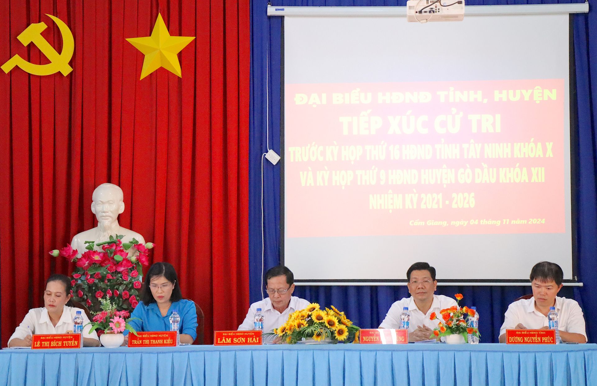 Tại buổi tiếp xúc, cử tri nêu một số ý kiến, kiến nghị đến đại biểu HĐND hai cấp như: kiến nghị ngành ngân hàng lắp đặt trụ ATM trên địa bàn xã để người dân (đặc biệt là các đối tượng chính sách, người có công và đối tượng bảo trợ xã hội) rút tiền mặt được thuận tiện hơn; tuyến đường giao thông thuộc tổ 10, ấp Cẩm Thắng, xã Cẩm Giang không có trên bản đồ hành chính, kiến nghị cập nhật tuyến đường lên bản đồ hành chính để thuận tiện cho việc quy hoạch, nâng cấp sửa chữa…