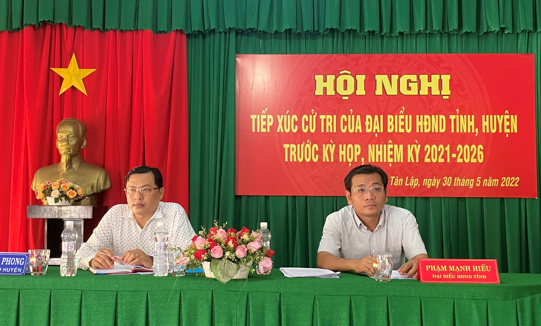Tại buổi tiếp xúc, cử tri xã Tân Lập kiến nghị: người dân có được chuyển quyền sử dụng đất hộ gia đình tại Khu dân cư biên giới Chàng Riệc không; một số hộ dân có đất thuộc khu sân bay Thiện Ngôn xã Tân Bình đến nay vẫn chưa được cấp giấy chứng nhận quyền sử dụng đất; đường trục chính khu dân cư Chàng Riệc ấp Tân Khai có đoạn bị ngập úng, ảnh hưởng đến việc đi lại của người dân; tội phạm về ma tuý, đánh bạc trên địa bàn ấp Tân Khai làm mất an ninh trật tự, cần được giải quyết triệt để; vẫn còn một số hộ dân chưa được hưởng tiền trợ cấp do ảnh hưởng dịch bệnh Covid-19; việc lấy đất làm kênh tiêu từ ấp Tân Tiến đến suối ấp Tân Đông 2 có hộ được đền bù, có hộ thì không.