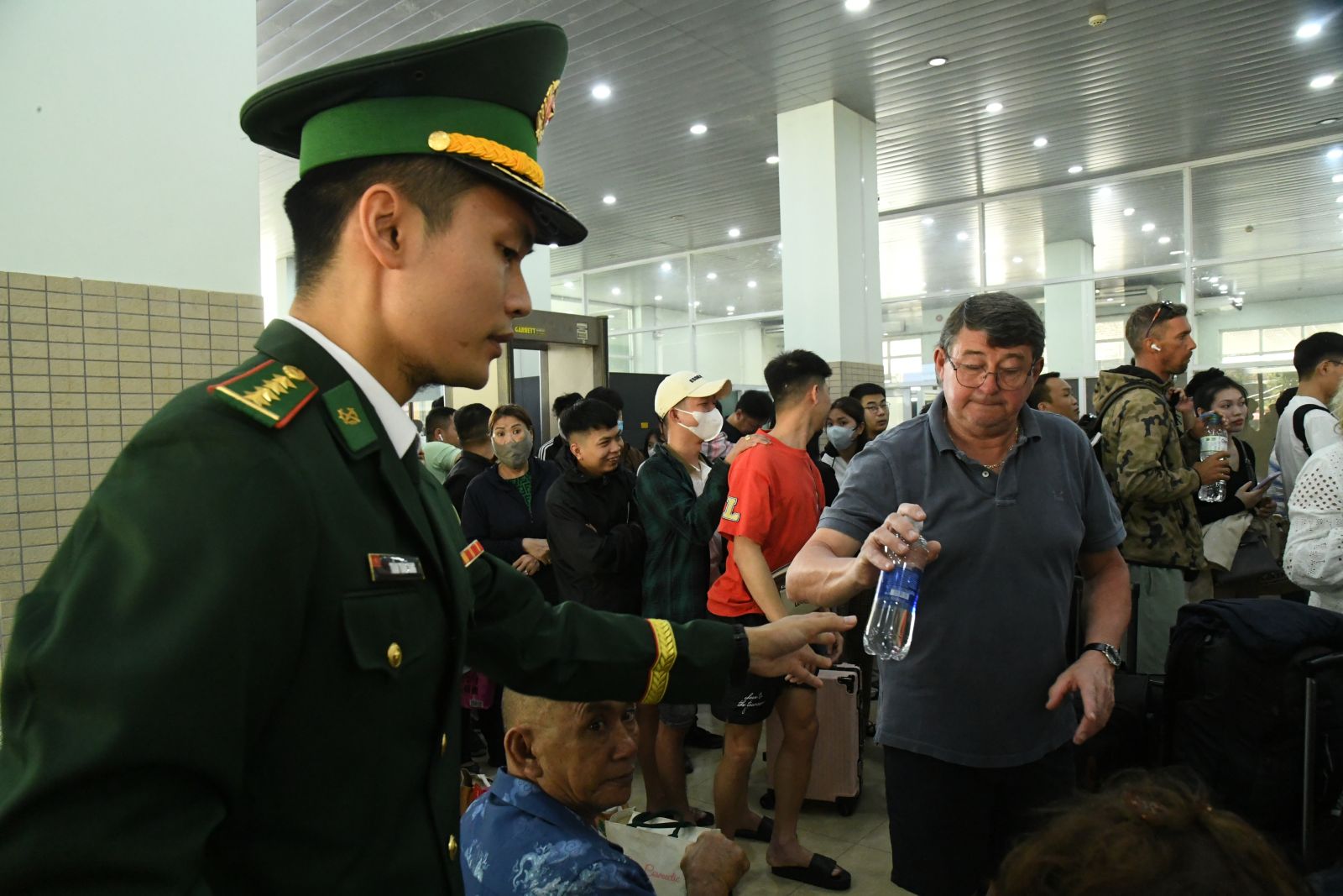 Nhiều du khách nước ngoài bất ngờ trước việc hỗ trợ nước uống của BĐBP Việt Nam.