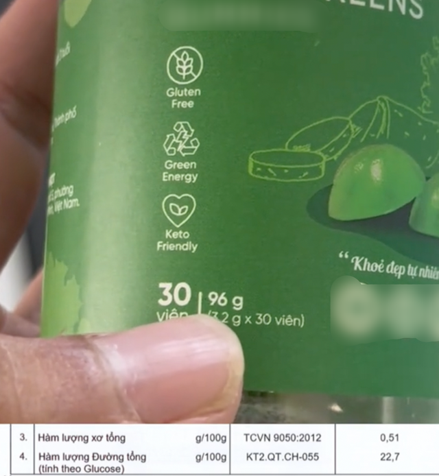 Ngày 4/3, một người tiêu dùng đăng tải video cho biết đã mang sản phẩm kẹo rau củ này đi kiểm nghiệm tại Trung tâm Kỹ thuật tiêu chuẩn đo lường chất lượng 2 (Ủy ban Tiêu chuẩn đo lường chất lượng quốc gia). Kết quả cho thấy, 30 viên (tương đương một hộp) chỉ có hàm lượng chất xơ là 0,51g.
