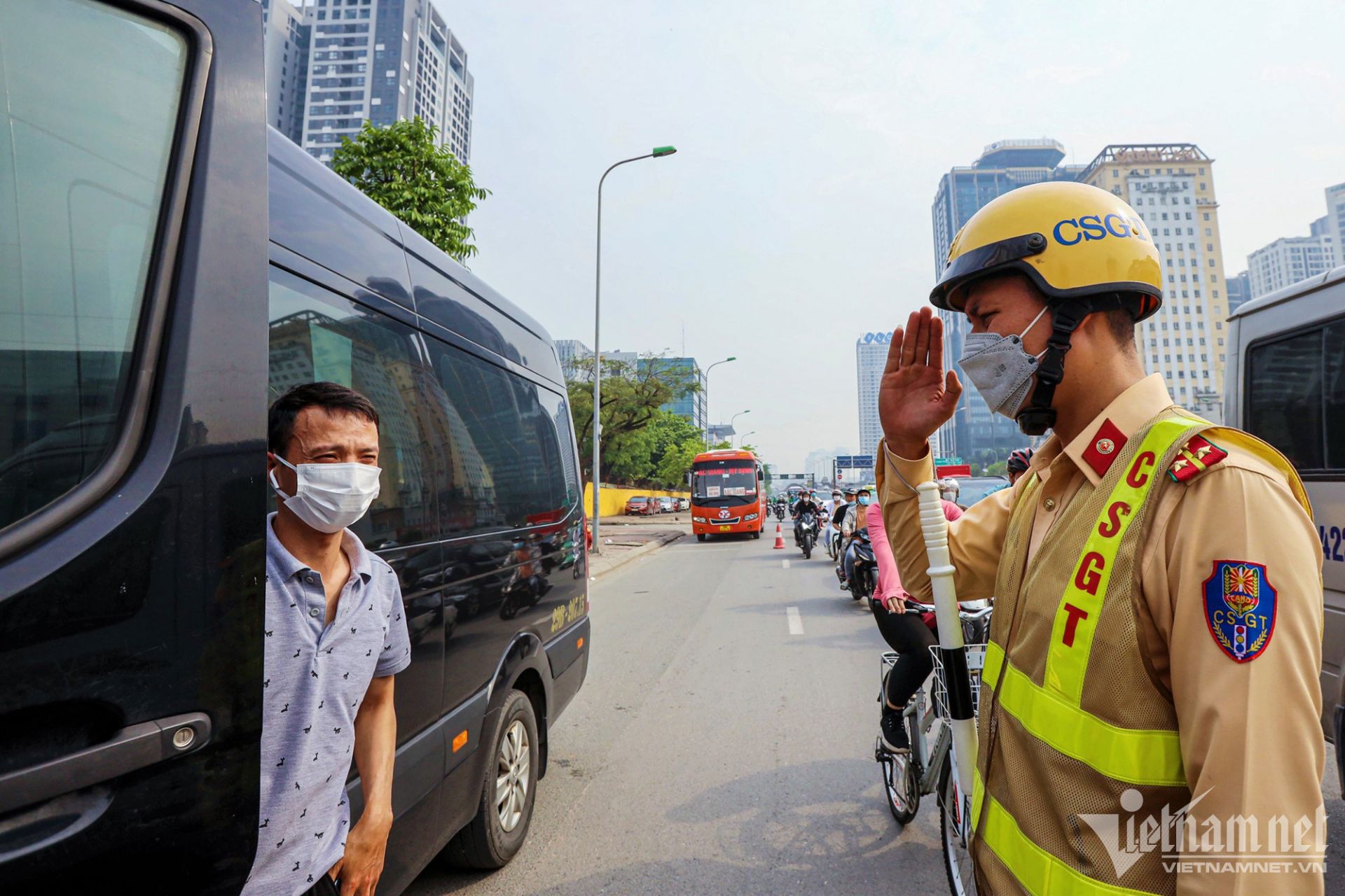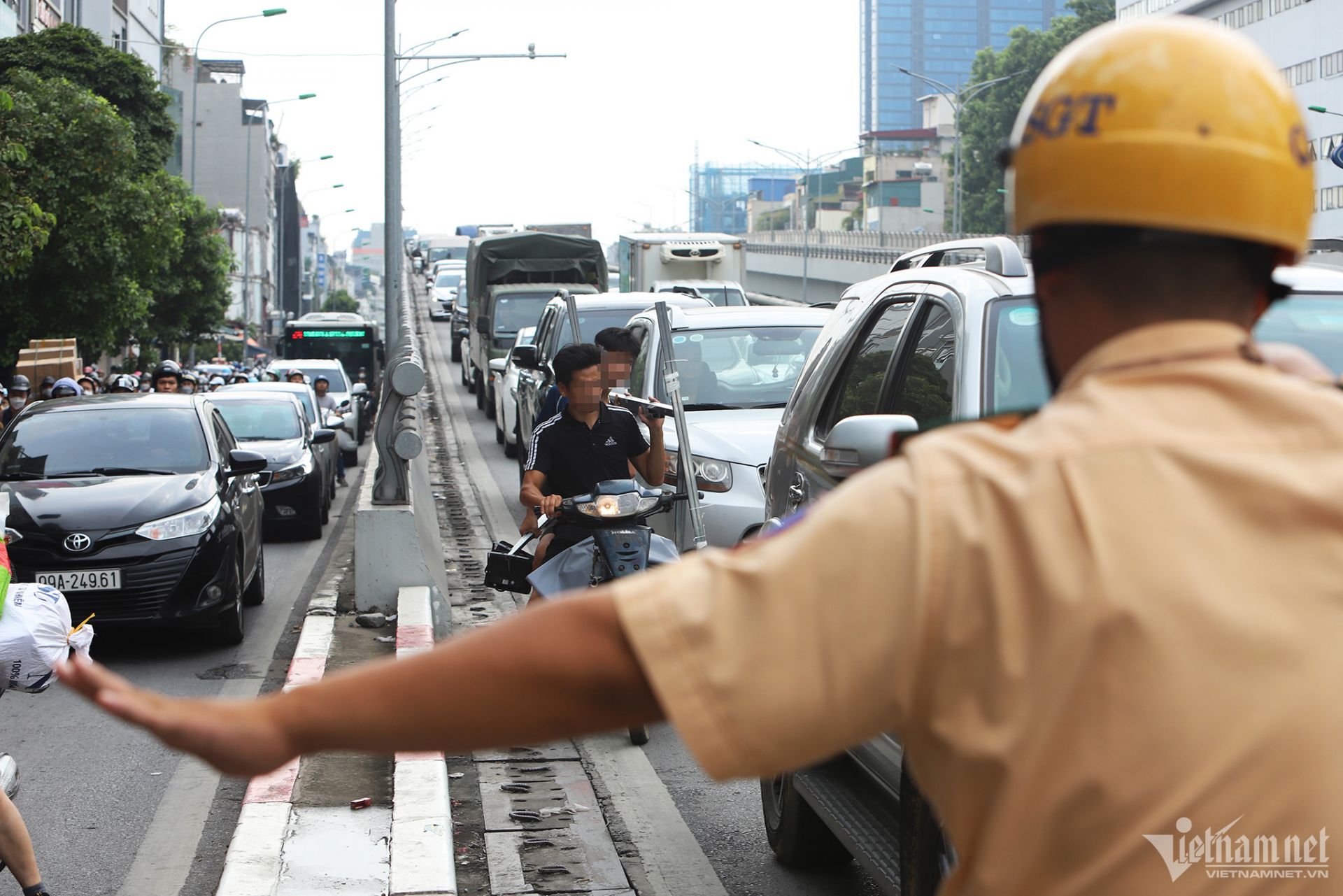 CSGT Hà Nội xử lý vi phạm tại đường Vành đai 2 trên cao.