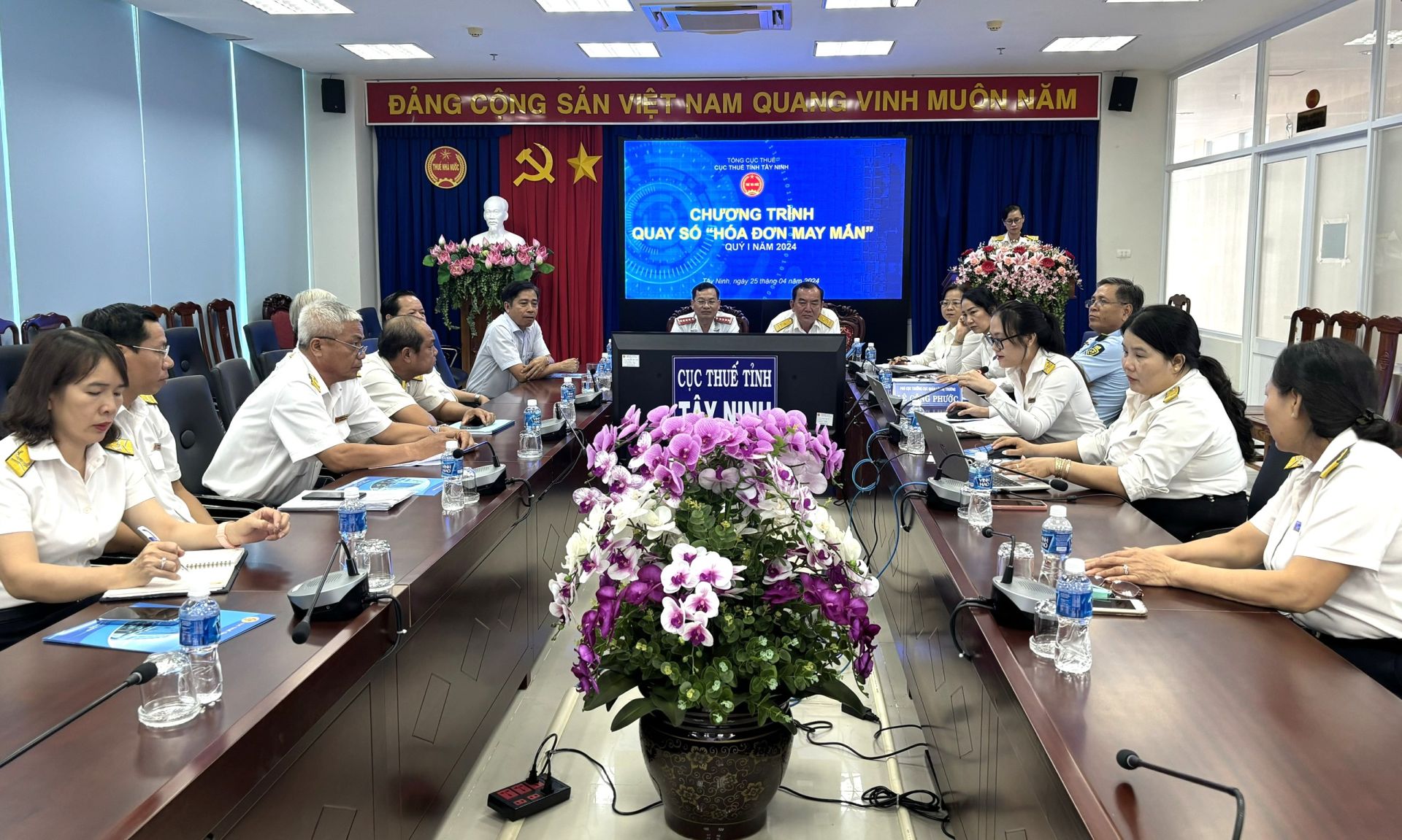 Cục Thuế Tây Ninh vừa tổ chức quay thưởng chương trình “Hoá đơn may mắn” quý I.2024, khuyến khích người tiêu dùng lấy hoá đơn khi mua hàng hoá, dịch vụ, tạo thói quen tiêu dùng văn minh.