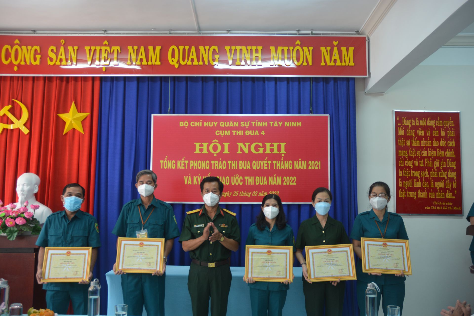 Các đơn vị trong cụm gồm: Ban CHQS Ngân hàng Thương mại cổ phần Ngoại Thương Việt Nam, Ngân hàng Nông nghiệp và phát triển nông thôn, Ngân hàng Thương mại cổ phần Công Thương, Ngân hàng Thương mại cổ phần đầu tư và phát triển, Ngân hàng Nhà nước, Ngân hàng chính sách xã hội, Quỹ đầu tư phát triển, Kho bạc Nhà nước Tây Ninh, Bệnh viện đa khoa Tây Ninh, Trường trung cấp Kinh tế- Kỹ thuật và Ban CHQS Trung tâm kinh doanh VNPT Tây Ninh tổng kết thực hiện phong trào thi đua năm 2021, ký kết thi đua năm 2022. Dự Hội nghị có Đại tá Trần Quốc Hưng- Phó Chủ nhiệm Chính trị Bộ CHQS tỉnh, Thủ trưởng các cơ quan Bộ CHQS tỉnh và lãnh đạo các đơn vị trong Cụm thi đua 4.