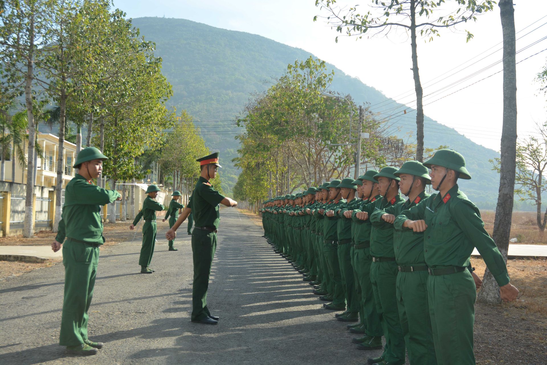 Chiến sĩ mới Trung đoàn 174 huấn luyện điều lệnh đội ngũ.