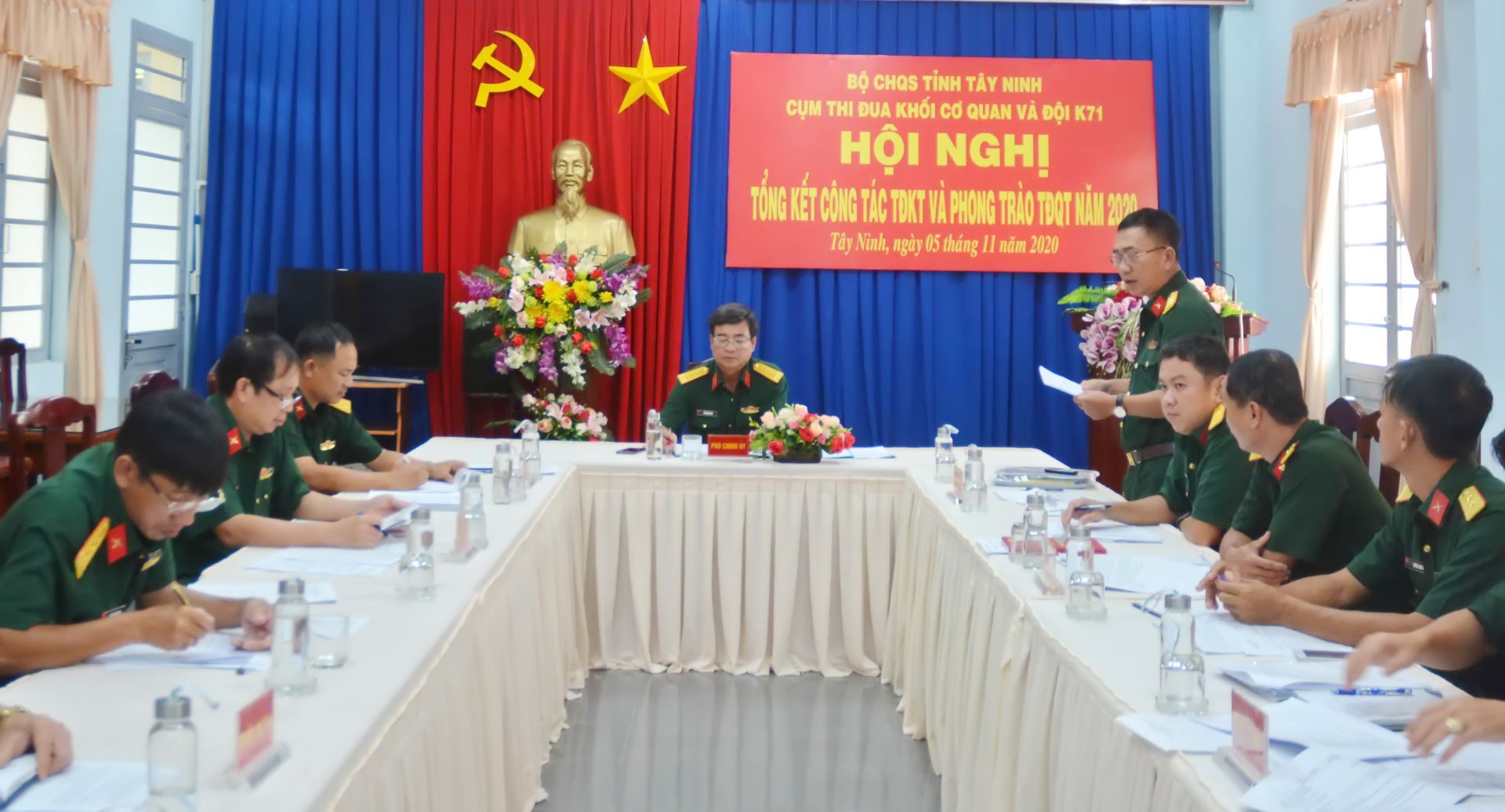 Ngày 6.11, Cụm thi đua khối cơ quan và Đội K71 tổ chức hội nghị tổng kết công tác thi đua, khen thưởng và phong trào thi đua quyết thắng năm 2020. Đại tá Đỗ Thành Việt–Phó Chính ủy Bộ CHQS tỉnh dự và chỉ đạo hội nghị.