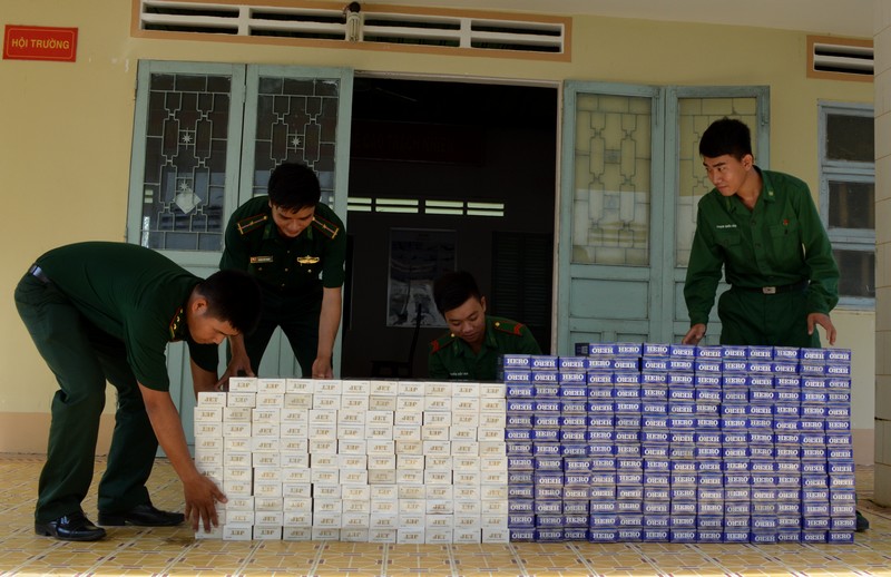 | Cán bộ, chiến sĩ Đồn BP Phước Chỉ kiểm kê số lượng thuốc lá nhập lậu bị lực lượng BĐBP bắt giữ- Ảnh minh hoạ. |