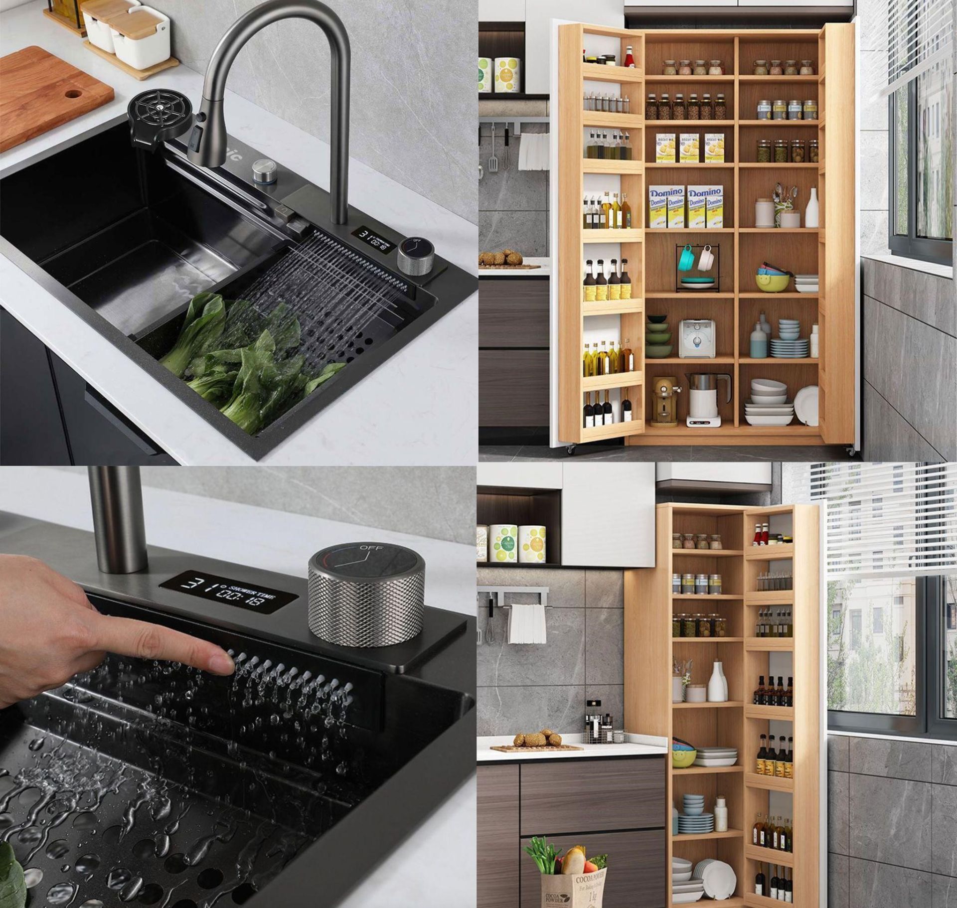 Bồn rửa chén đa năng BR01 và Tủ đựng đồ nhà bếp bằng gỗ TCB08.