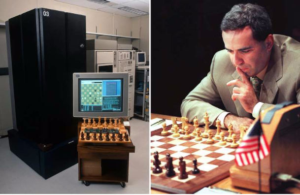 Siêu máy tính IBM Deep Blue đã đánh bại nhà vô địch cờ vua thế giới Kasparov ngày 11 tháng 5 năm 1997. Siêu máy tính này đã thắng hai ván và hòa ba. Đây là lần đầu tiên một chương trình máy tính đánh bại một nhà vô địch cờ vua thế giới trong một trận đấu theo quy định của liên đoàn cờ vua quốc tế.