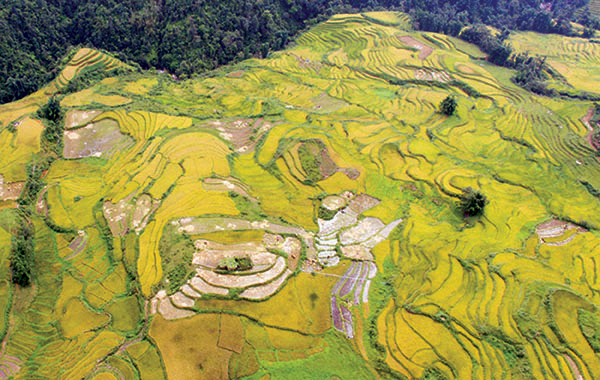 Ruộng bậc thang xã San Sả Hồ (Sa Pa) vào vụ lúa chín.