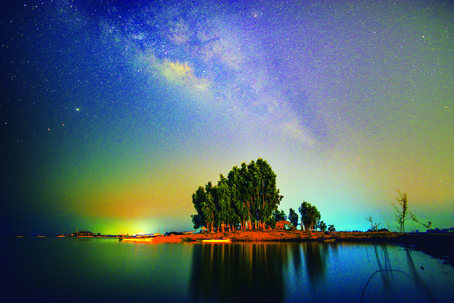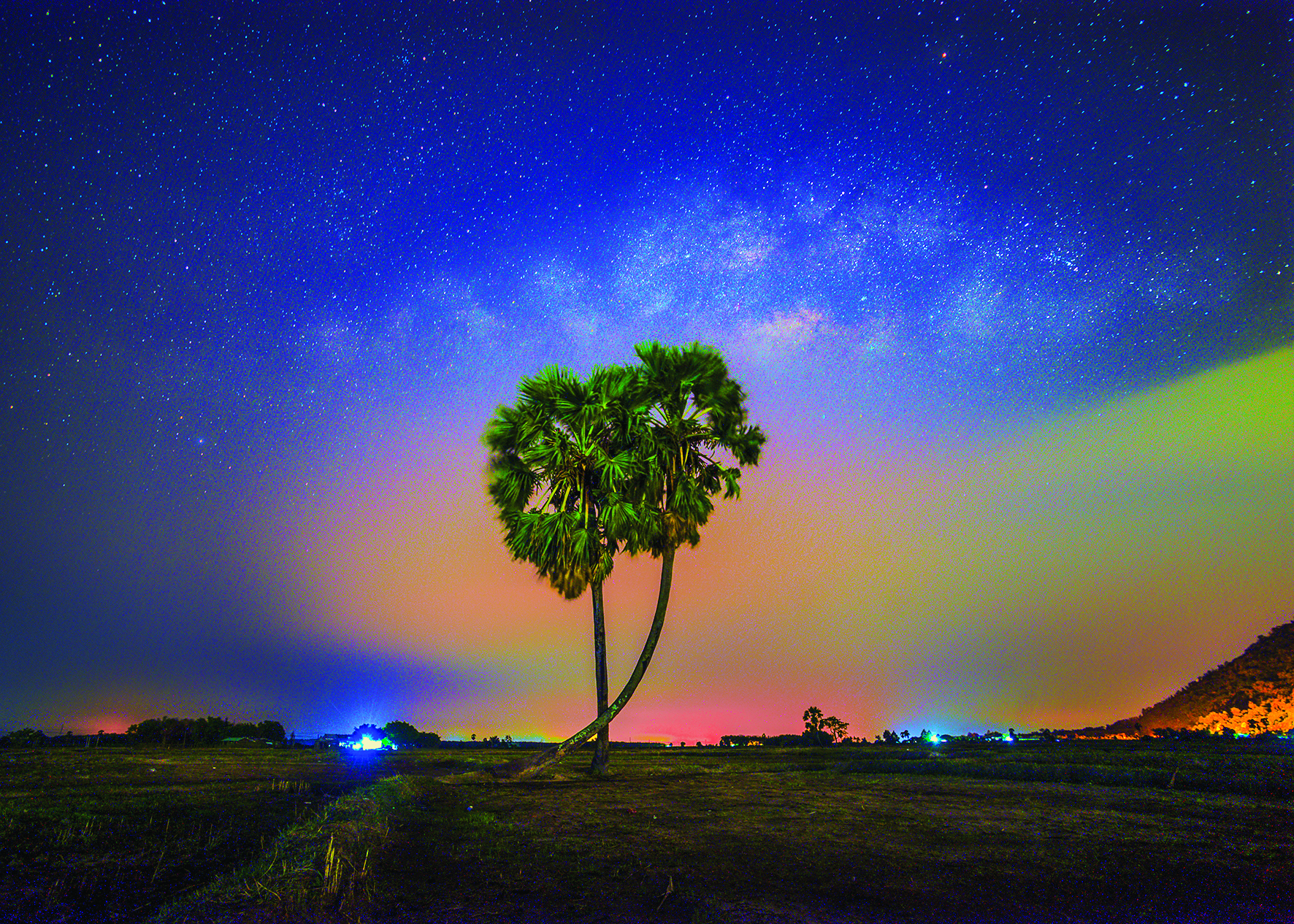 Với niềm đam mê đó, nhiếp ảnh gia Nguyễn Minh Thiện đã chụp được dải thiên hà tại cây thốt nốt đôi, cây trâm cô đơn, bờ hồ Dầu Tiếng…