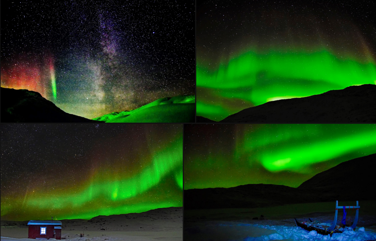 Đêm, tôi chụp bầu trời Ilulissat, nhiệt độ ngoài trời chỉ âm 18 độ C, vì nơi này sát vịnh biển, thêm nữa lại gần chỗ tảng băng trôi nên có thể nhiệt độ xuống tới âm 20 độ, gió rít lạnh tận xương. Được ngắm thiên nhiên diệu kỳ, lắng nghe câu chuyện về người phương Bắc, trải nghiệm nét văn hóa hàng nghìn năm của người bản địa vùng cận Bắc Cực... là những món quà quý mà người lữ khách như tôi ưu ái được nhận khi tới Greenland.