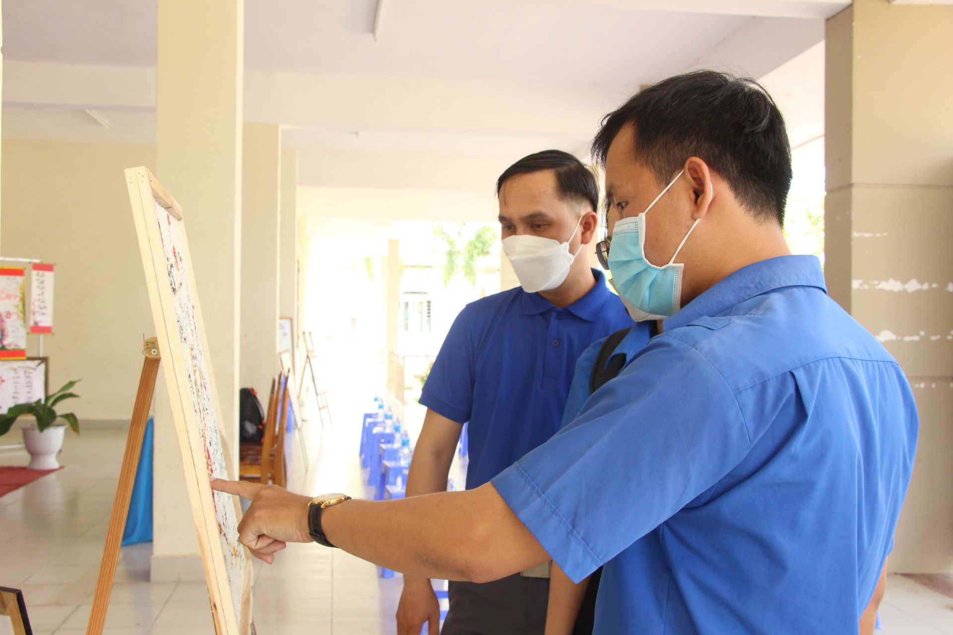 Đoàn viên, thanh niên xem triển lãm các bức tranh lọt vào chung kết
