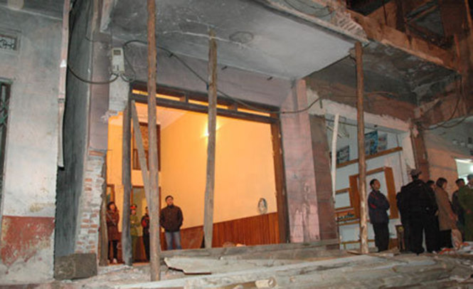 Nhà giám đốc Công an tỉnh Thái Nguyên bị ốp mìn tung cửa sắt - Ảnh: QUANG THẾ