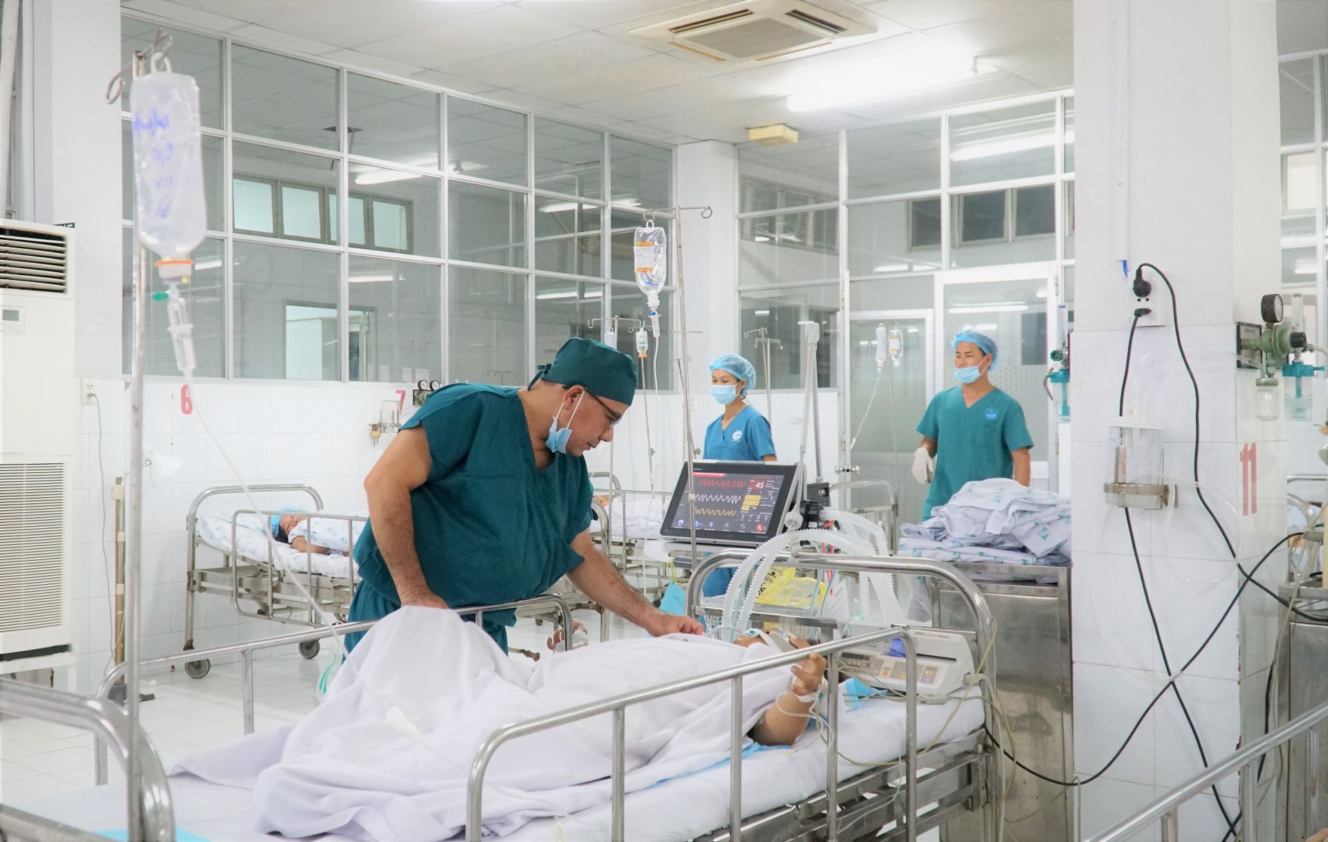 Đêm 9.7, bệnh viện tiếp nhận sản phụ Tỵ trong tình trạng suy hô hấp nặng, da tím tái, mạch nhanh 120 lần/phút, SpO2 60%, huyết áp tăng cao 160/100mmHg. Phổi nghe nhiều ran ẩm cả 2 phế trường. Bệnh nhân được chẩn đoán tiền sản giật rất nặng, theo dõi biến chứng phù phổi cấp. Các bác sĩ đã tiến hành cấp cứu, đo tim thai, kết quả tim thai đập yếu, tình hình nguy cấp cho cả mẹ lẫn con. Kíp trực hội chẩn ngay, vừa hồi sức cho sản phụ và quyết định mổ cấp cứu lấy thai để cứu sống mẹ lẫn con.
