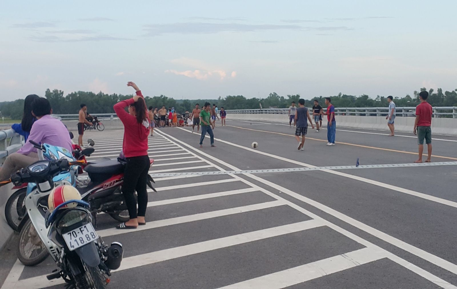 Thời gian gần đây, nhiều thanh niên chọn mặt cầu vượt đường Hồ Chí Minh để làm sân đá bóng vào buổi chiều, khiến nhiều người dân cảm thấy lo ngại.