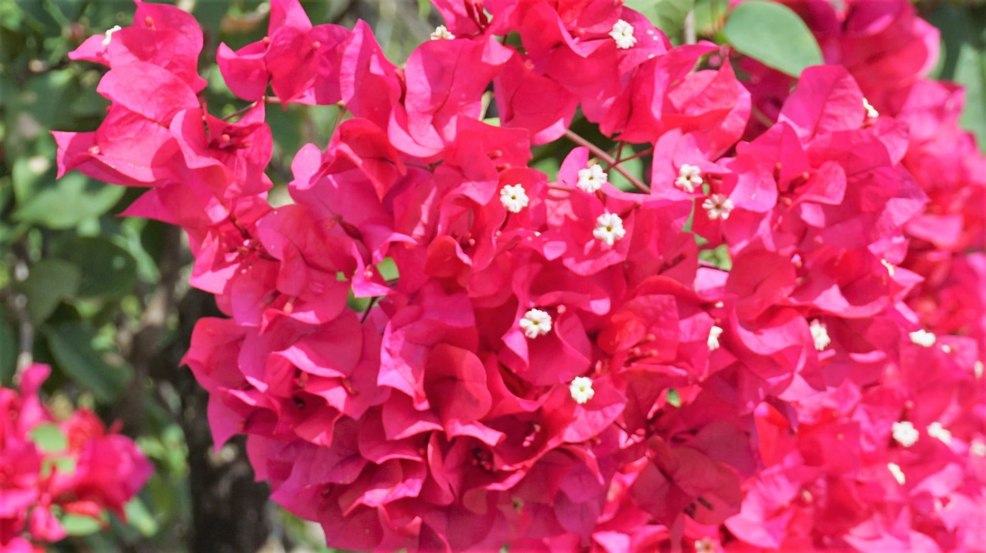 Hoa giấy từng chùm thắm đỏ.