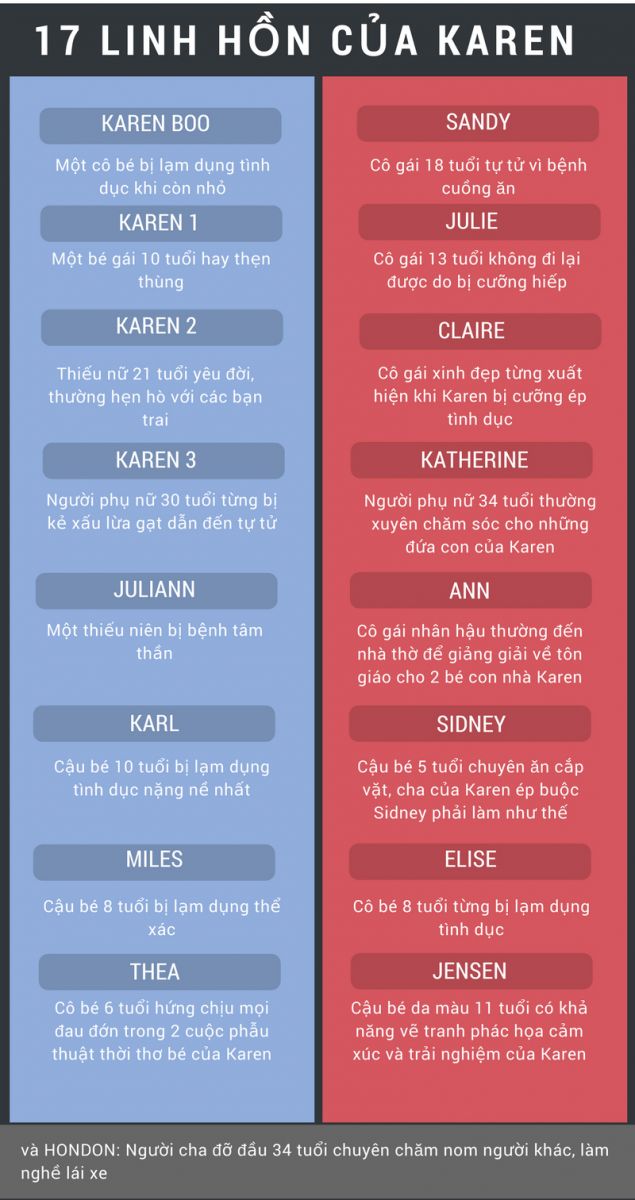 Karen - người phụ nữ sở hữu 17 nhân cách (infographic: Trang Nguyen)
