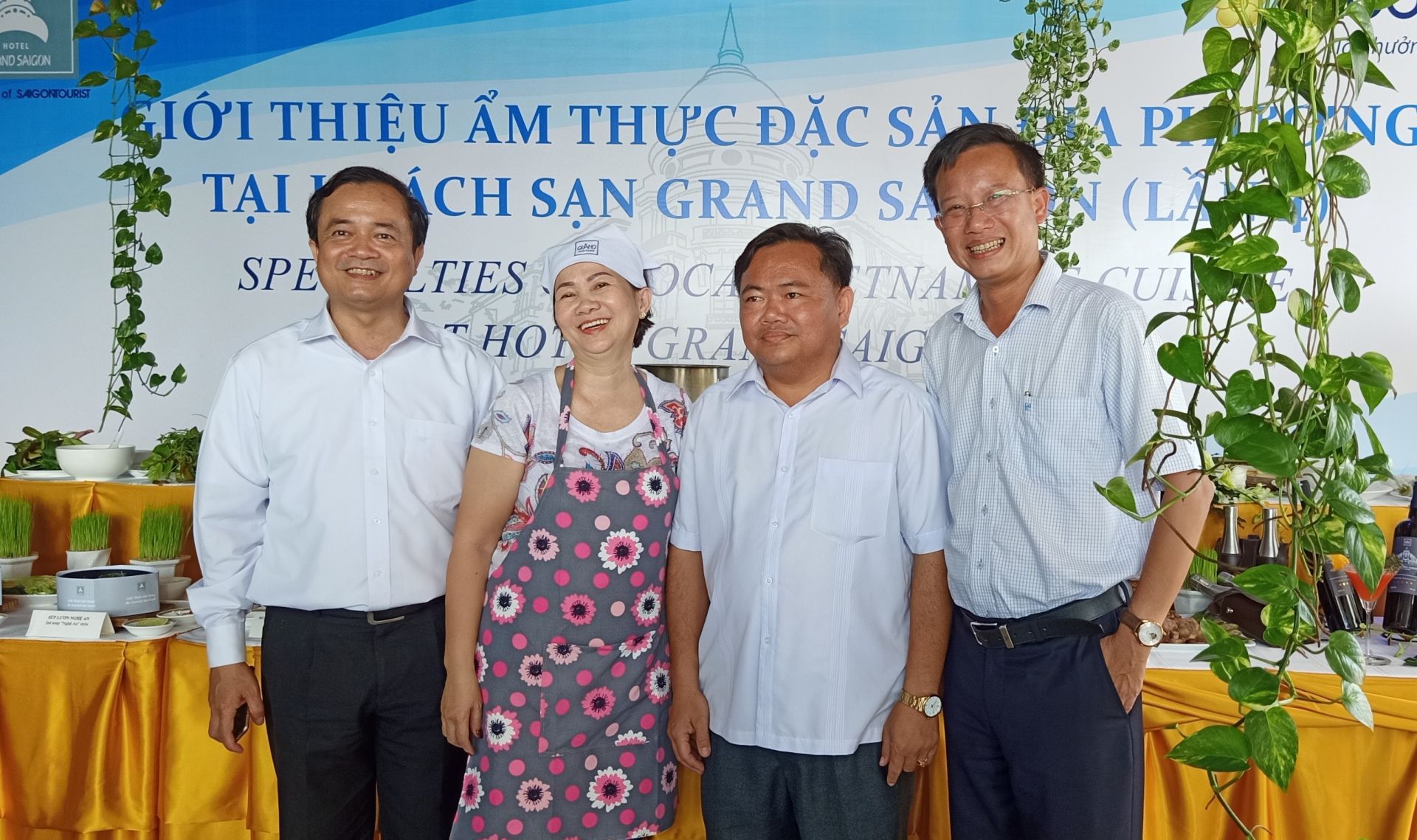 Lãnh đạo Sở VHTT&DL Tây Ninh cùng UBND huyện Trảng Bàng chụp hình lưu niệm tại buổi giới thiệu đặc sản ẩm thực Tây Ninh.