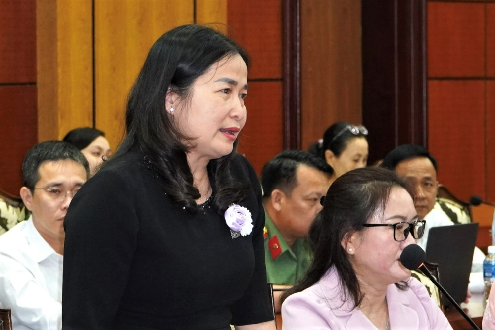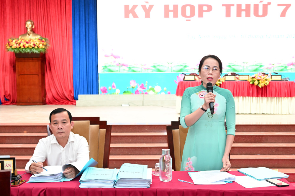 Đại biểu Huỳnh Thị Phương Quyên đề nghị sớm hoàn thiện hệ thống đê bao dọc theo sông Vàm Cỏ Tây để ngăn lũ, triều cường, bảo vệ mùa màng, đáp ứng mong mỏi của cử tri các xã.