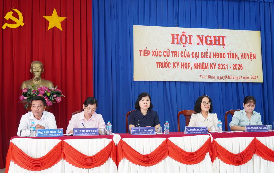 * Tại xã Thái Bình, bà Nguyễn Thị Yến Mai- Trưởng Ban Tổ chức Tỉnh uỷ, Trưởng Ban Kinh tế - Ngân sách HĐND tỉnh cùng tổ đại biểu HĐND tỉnh và tổ đại biểu HĐND huyện Châu Thành tiếp xúc cử tri xã Thái Bình và Sư đoàn 5.