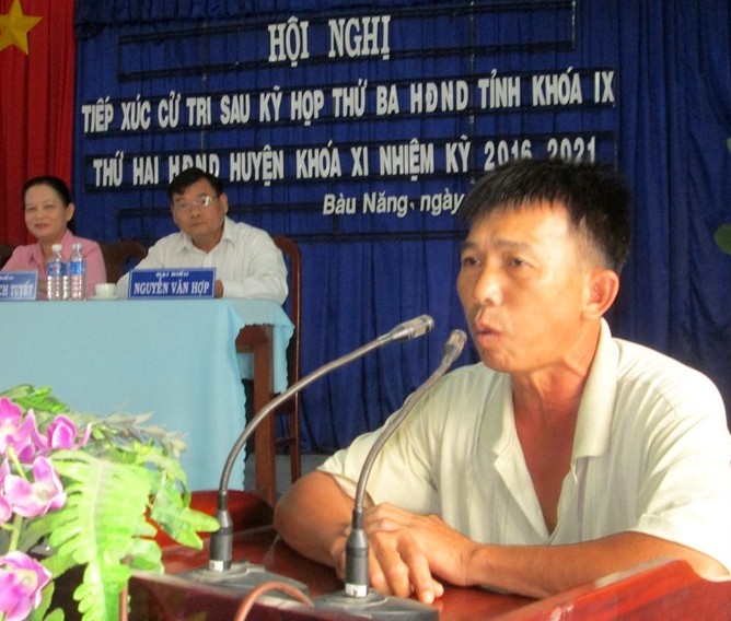 Cử tri xã Bàu Năng nêu kiến nghị trong buổi gặp gỡ đại biểu HĐND tỉnh. |