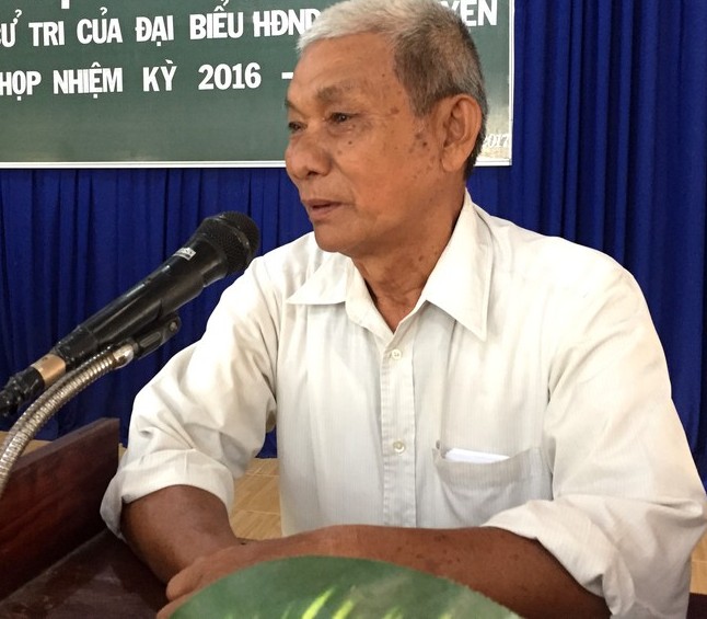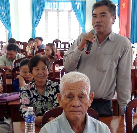 Cử tri xã Long Thuận phát biểu ý kiến tại buổi tiếp xúc. |