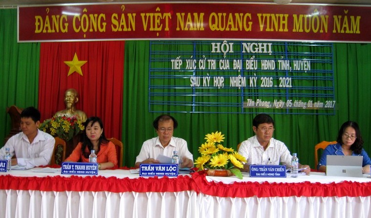 Đại biểu HĐND tỉnh và huyện Tân Biên tại buổi tiếp xúc với cử tri xã Tân Phong. |
