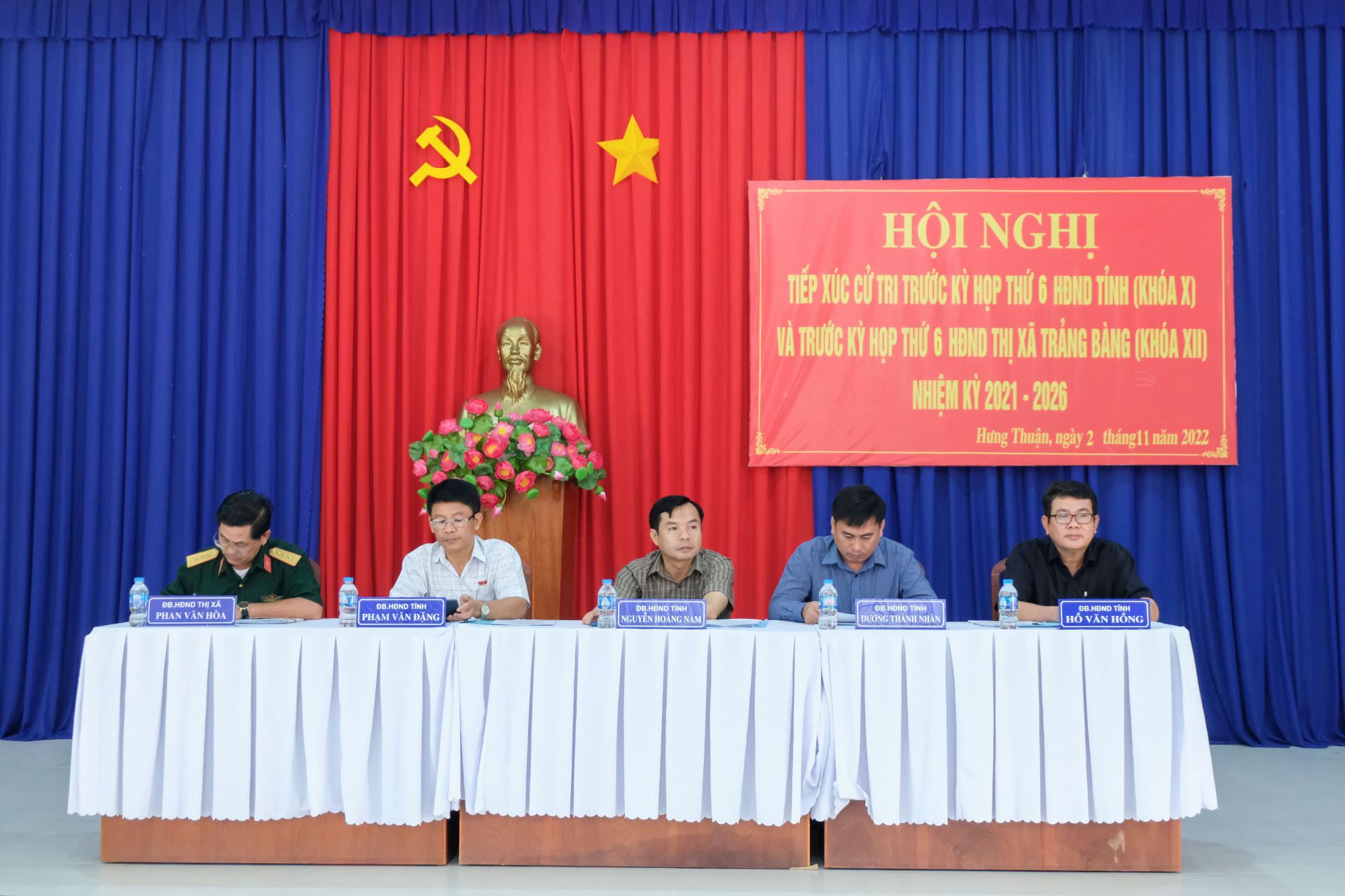 Ngày 2.11, tổ đại biểu HĐND tỉnh gồm các ông: Nguyễn Hoàng Nam – Phó Chủ nhiệm Uỷ ban Kiểm tra Tỉnh uỷ; Phạm Văn Đặng– Giám đốc Sở Tư pháp tỉnh; Hồ Văn Hồng– Phó Bí thư Thường trực Thị uỷ, Chủ tịch HĐND thị xã Trảng Bàng; Dương Thành Nhàn- Trưởng Phòng Hành chính, Tổ chức, Quản trị, Văn phòng Đoàn đại biểu Quốc hội và HĐND tỉnh cùng tổ đại biểu HĐND thị xã Trảng Bàng có buổi tiếp xúc cử tri xã Hưng Thuận trước kỳ họp thứ 6 HĐND tỉnh và HĐND Thị xã, nhiệm kỳ 2021 – 2026.