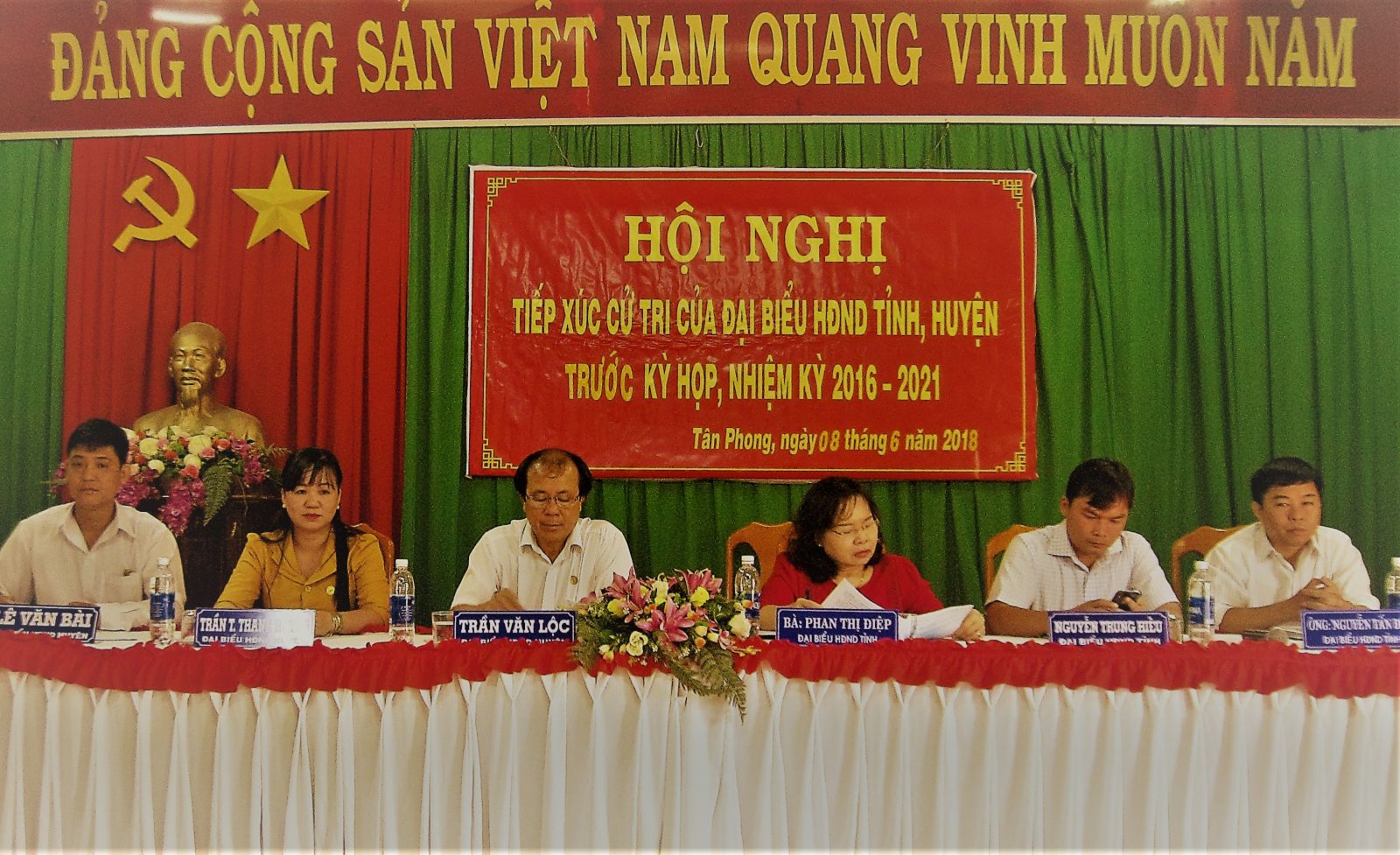 Ngày 8.6.2018, tại xã Tân Phong, Tổ đại biểu HĐND tỉnh Tây Ninh, gồm Bà Phan Thị Điệp- Phó Chủ tịch HĐND tỉnh, ông Nguyễn Tấn Đức- Phó Giám đốc Sở Thông tin và Truyền thông, ông Nguyễn Trung Hiếu- Phó Phòng Kinh tế Tài chính, Văn phòng UBND tỉnh cùng tổ đại biểu HĐND huyện Tân Biên có buổi tiếp xúc với hơn 80 cử tri trong xã trước kỳ họp lần thứ 9 HĐND tỉnh Tây Ninh, kỳ họp lần thứ 6 HĐND huyện Tân Biên nhiệm kỳ 2016-2021.