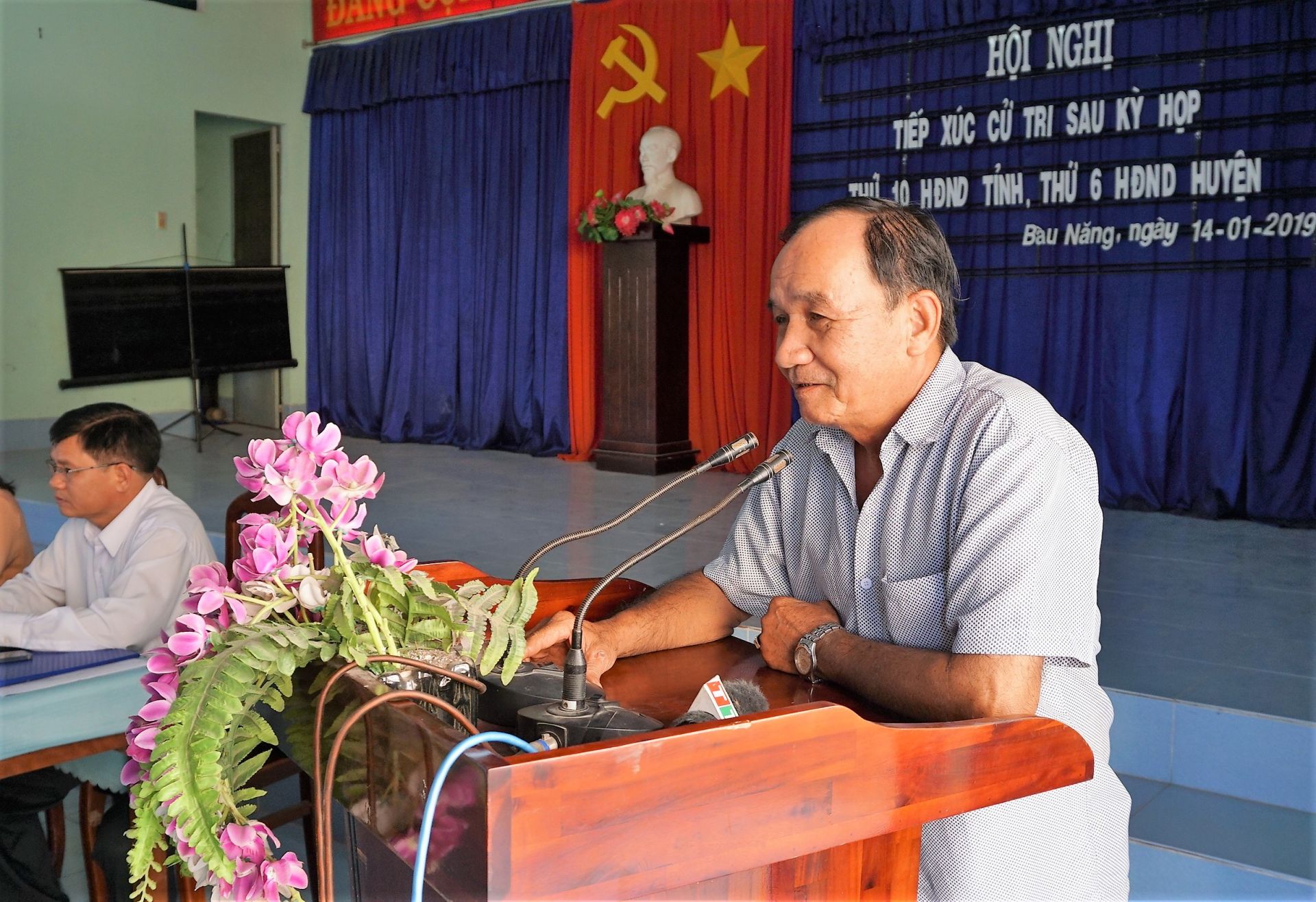 Chiều 14.1.2019, tại Hội trường UBND Bàu Năng, huyện Dương Minh Châu (DMC) đã diễn ra Hội nghị tiếp xúc của đại biểu HĐND với 80 cử tri trong xã.