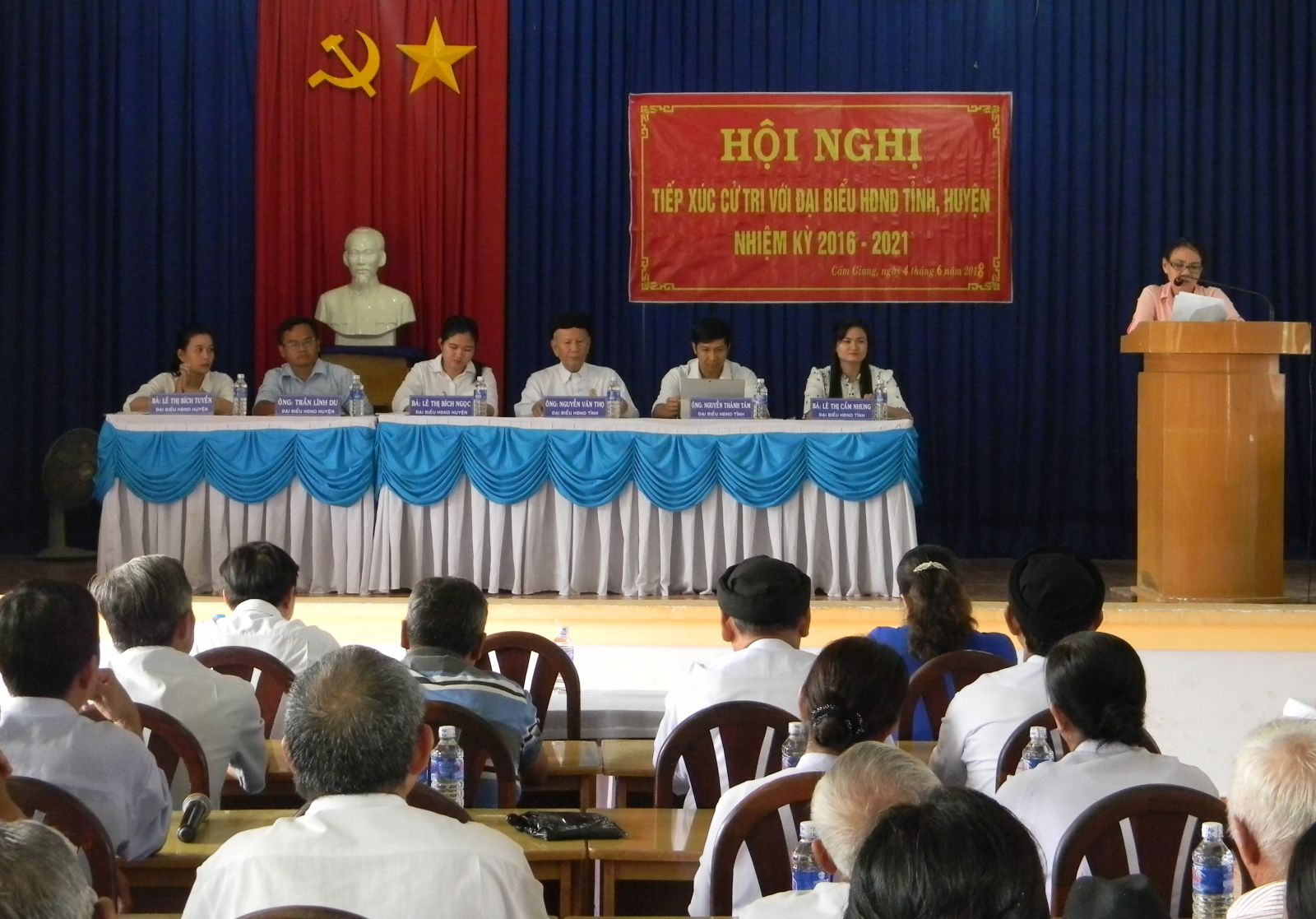 Sáng 4.6, tổ đại biểu HĐND tỉnh gồm các ông Nguyễn Thành Tâm- Chủ tịch HĐND tỉnh, Nguyễn Văn Thọ (Giáo sư Thái Thọ Thanh)- Trưởng ban đại diện Hội thánh Cao Đài Tòa thánh Tây Ninh và bà Lê Thị Cẩm Nhung- Phó Chủ tịch Hội LHPN Gò Dầu cùng tổ đại biểu HĐND huyện Gò Dầu đã có buổi tiếp xúc với gần 80 cử tri xã Cẩm Giang (huyện Gò Dầu).