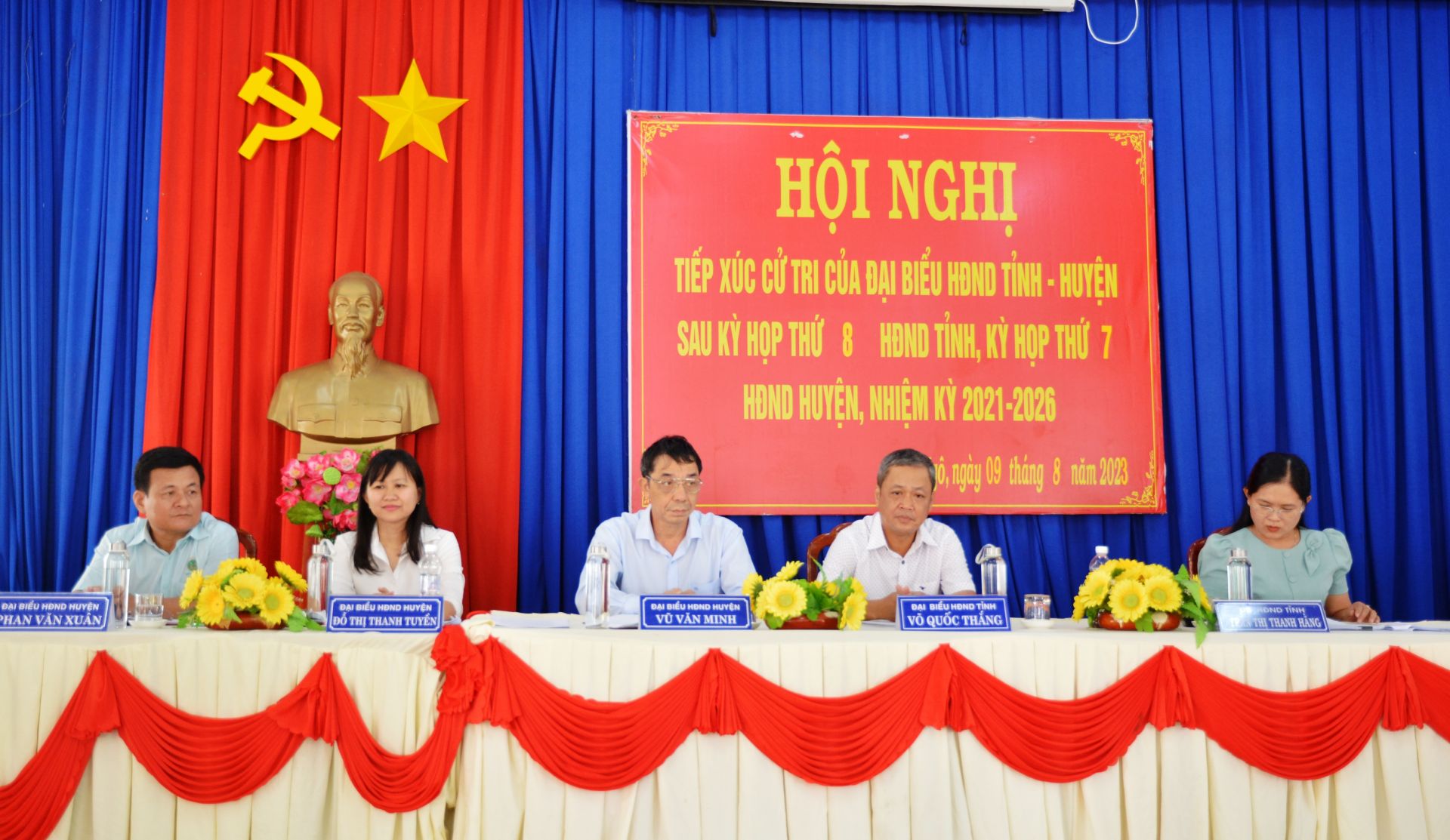* Trước đó, chiều 9.8, tổ đại biểu HĐND tỉnh có bà Trần Thị Thanh Hằng- Phó trưởng Ban Tổ chức Tỉnh uỷ, ông Võ Quốc Thắng- Phó Bí thư Thường trực Huyện uỷ Tân Châu, cùng tổ đại biểu HĐND huyện tiếp xúc cử tri xã Suối Ngô.
