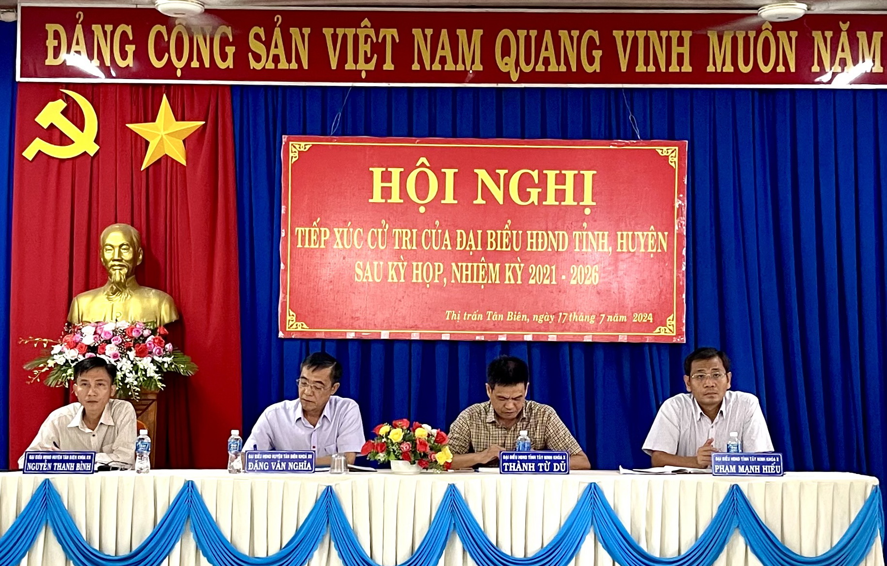 Chiều 17.7, Tổ đại biểu HĐND tỉnh Tây Ninh gồm ông Thành Từ Dũ- Bí thư Huyện uỷ, Chủ tịch HĐND huyện Tân Biên; ông Phạm Mạnh Hiếu- Phó Giám đốc Trung tâm Quy hoạch và Giám định chất lượng xây dựng (Sở Xây dựng) cùng Tổ đại biểu HĐND huyện Tân Biên có buổi tiếp xúc hơn 90 cử tri thị trấn Tân Biên.