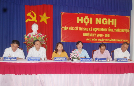 Ngày 14.1, tổ đại biểu HĐND tỉnh gồm: ông Dương Văn Thắng-Phó Chủ tịch UBND tỉnh, ông Võ Văn Dũng-Chủ tịch LĐLĐ tỉnh, bà Huỳnh Thị Thu Hà-Chuyên viên Sở khoa học-Công nghệ cùng tổ đại biểu HĐND huyện Gò Dầu đã có buổi tiếp xúc với khoảng 140 cử tri xã Bàu Đồn, huyện Gò Dầu.