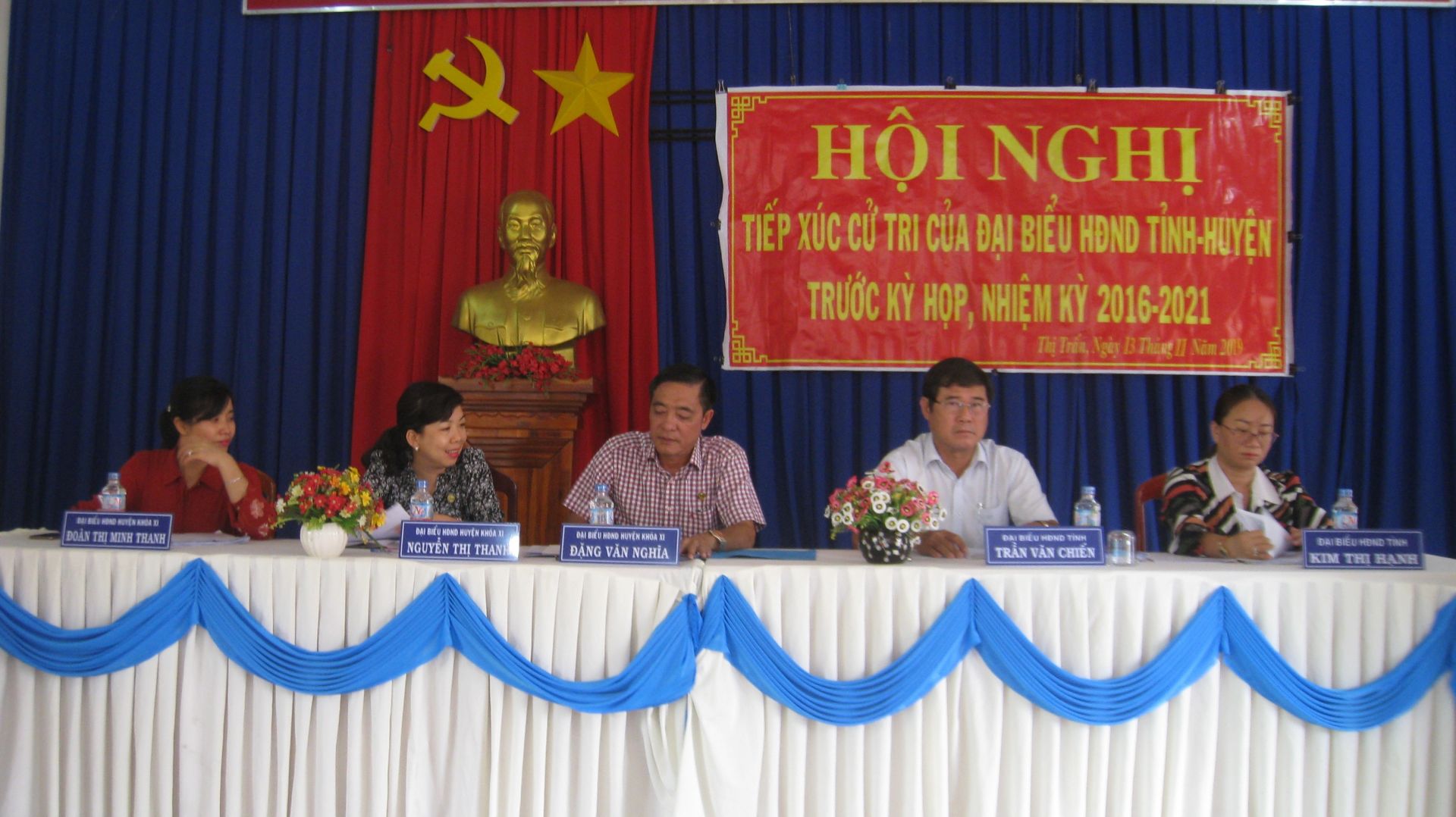 Đại biểu HĐND tỉnh tham dự buổi tiếp xúc có ông Phạm Văn Tân- Chủ tịch UBND tỉnh, Đại tá Nguyễn Văn Trứ- Chỉ huy trưởng Bộ Chỉ huy quân sự, ông Trần Anh Minh- Chủ tịch UBND huyện Trảng Bàng và các đại biểu HĐND thành phố Tây Ninh.