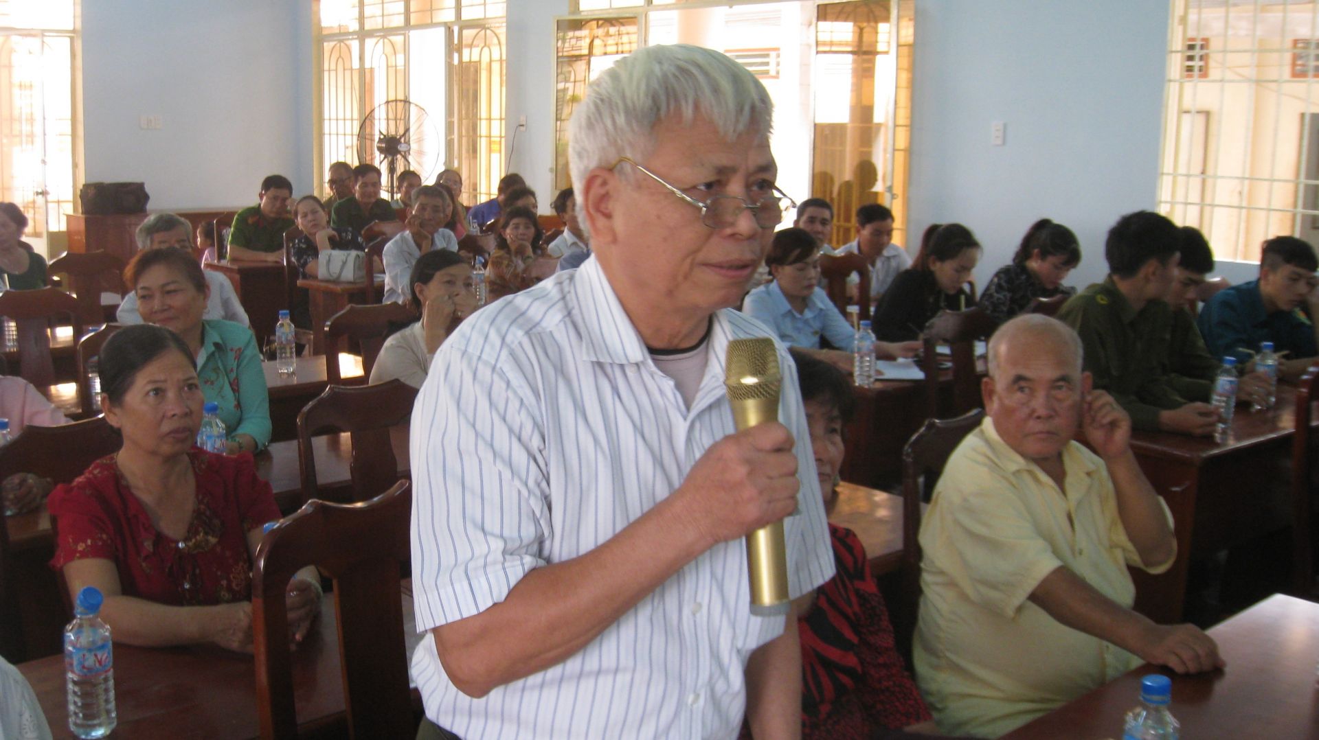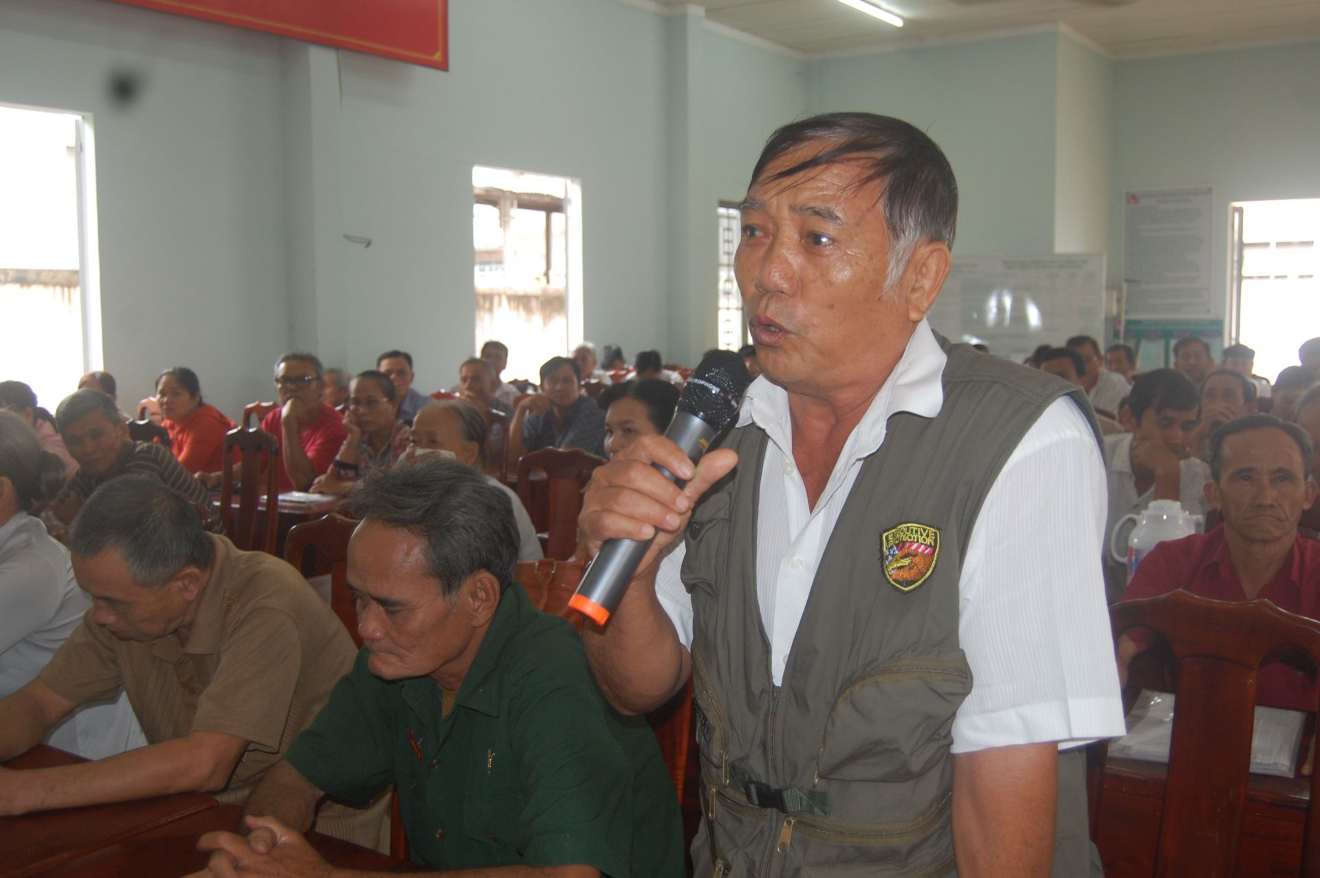 Cử tri xã Bàu Đồn phát biếu tại buổi tiếp xúc đại biểu.