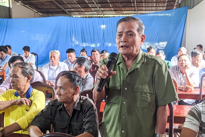 Cử tri phát biểu ý kiến tại buổi tiếp xúc.