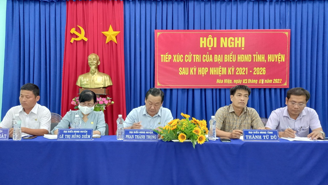 Cử tri xã Hoà Hiệp đề nghị, nên có chính sách hỗ trợ kinh phí dịch tả lợn châu Phi cho người dân; người dân khám bệnh BHYT tại Trung tâm Y tế huyện nhưng thiếu thuốc phải ra ngoài mua; cầu bắc qua kênh Phước Hoà tại Sóc Thiết thấp, hai bên đầu cầu lại cao, mùa mưa nước tràn qua gây khó khăn cho việc vận chuyển nông sản, đi lại của người dân.