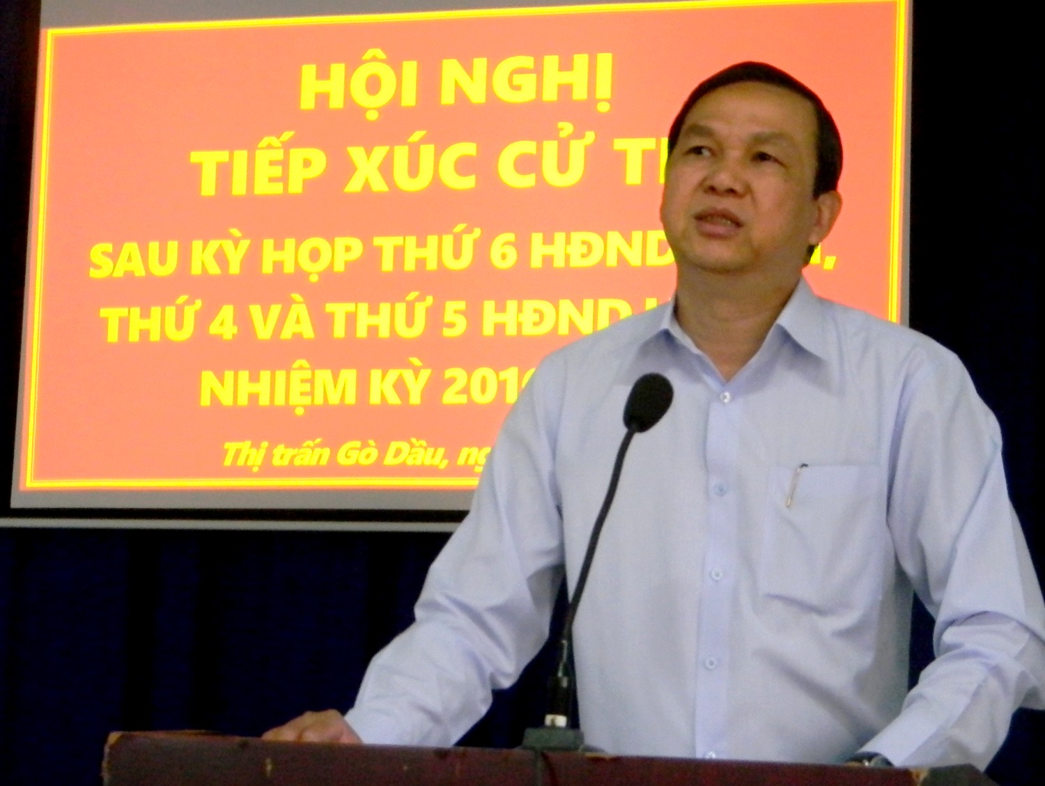 Ông Dương Văn Thắng- Phó Chủ tịch UBND tỉnh tiếp thu ý kiến của cử tri, đồng thời giao trách nhiệm cho UBND thị trấn Gò Dầu xem xét, giải quyết phản ánh của cử tri và vận động người dân tích cực hưởng ứng vệ sinh môi trường, chống lại các hoạt động buôn bán hàng gian, hàng giả, hàng lậu trong dịp Tết nguyên đán Mậu Tuất 2018.