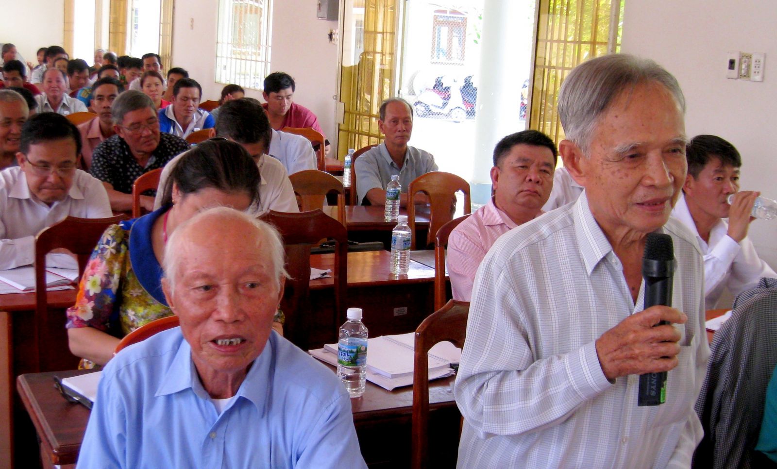 Cử tri thị trấn Tân Biên phát biểu ý kiến tại buổi tiếp xúc. |