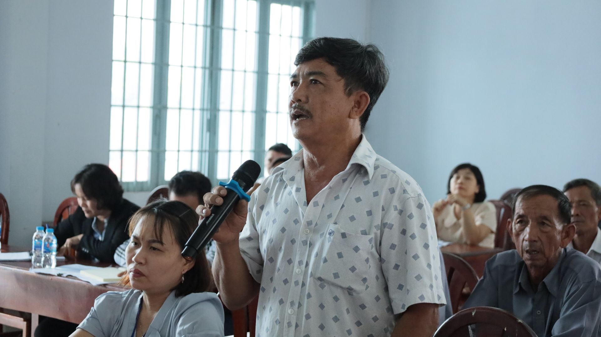 Ông Châu Văn Nghĩa, cử tri ấp Suối Muồn phát biểu ý kiến tại buổi tiếp xúc.