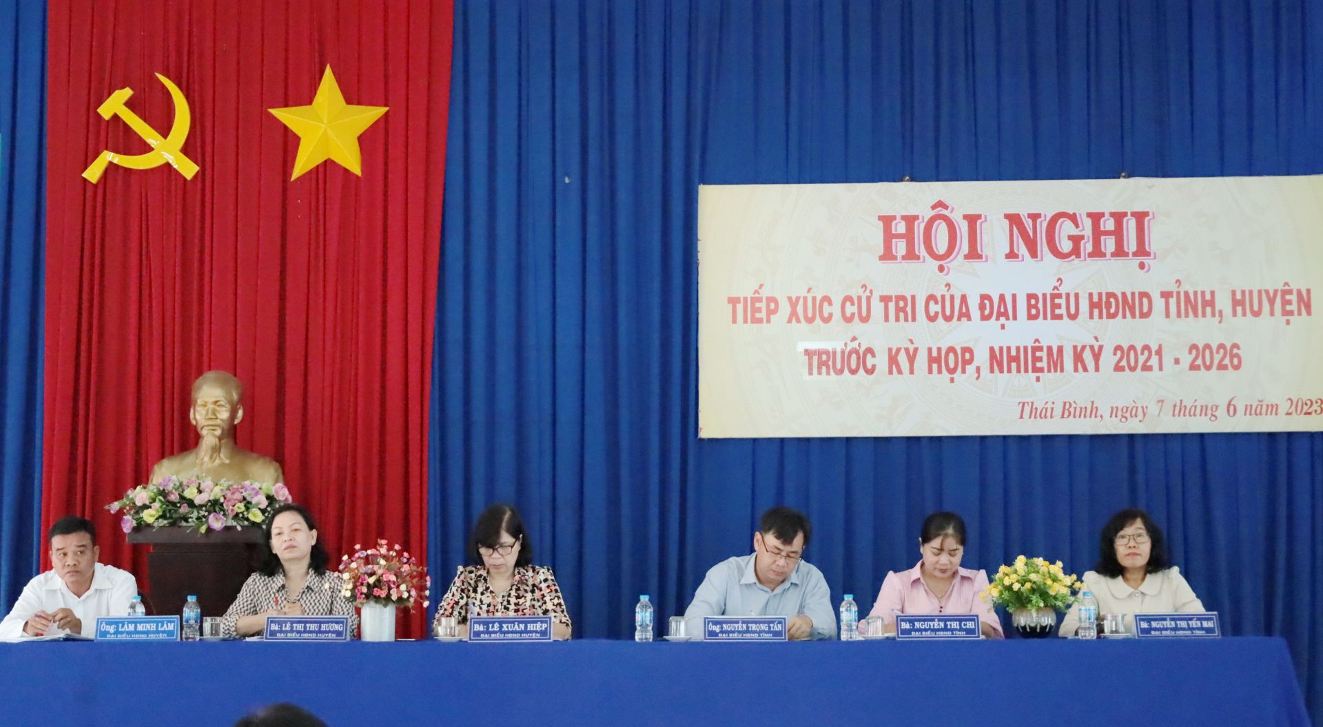 Trả lời ý kiến cử tri tại buổi tiếp xúc, ông Hồ Sĩ Hiệp- Phó Chủ tịch UBND xã Thái Bình cho biết, UBND xã sẽ chỉ đạo các đơn vị liên quan thực hiện chặt cành cây vươn ra người đường giao thông, bảo đảm an toàn cho người dân. Đối với ý kiến về việc cập nhật tuyến đường hẻm số 5 vào bản đồ, ông Hồ Sĩ Hiệp thay mặt UBND xã ghi nhận và hứa sẽ yêu cầu cán bộ địa chính xã kiểm tra bổ sung vào bản đồ quản lý hành chính địa phương.
