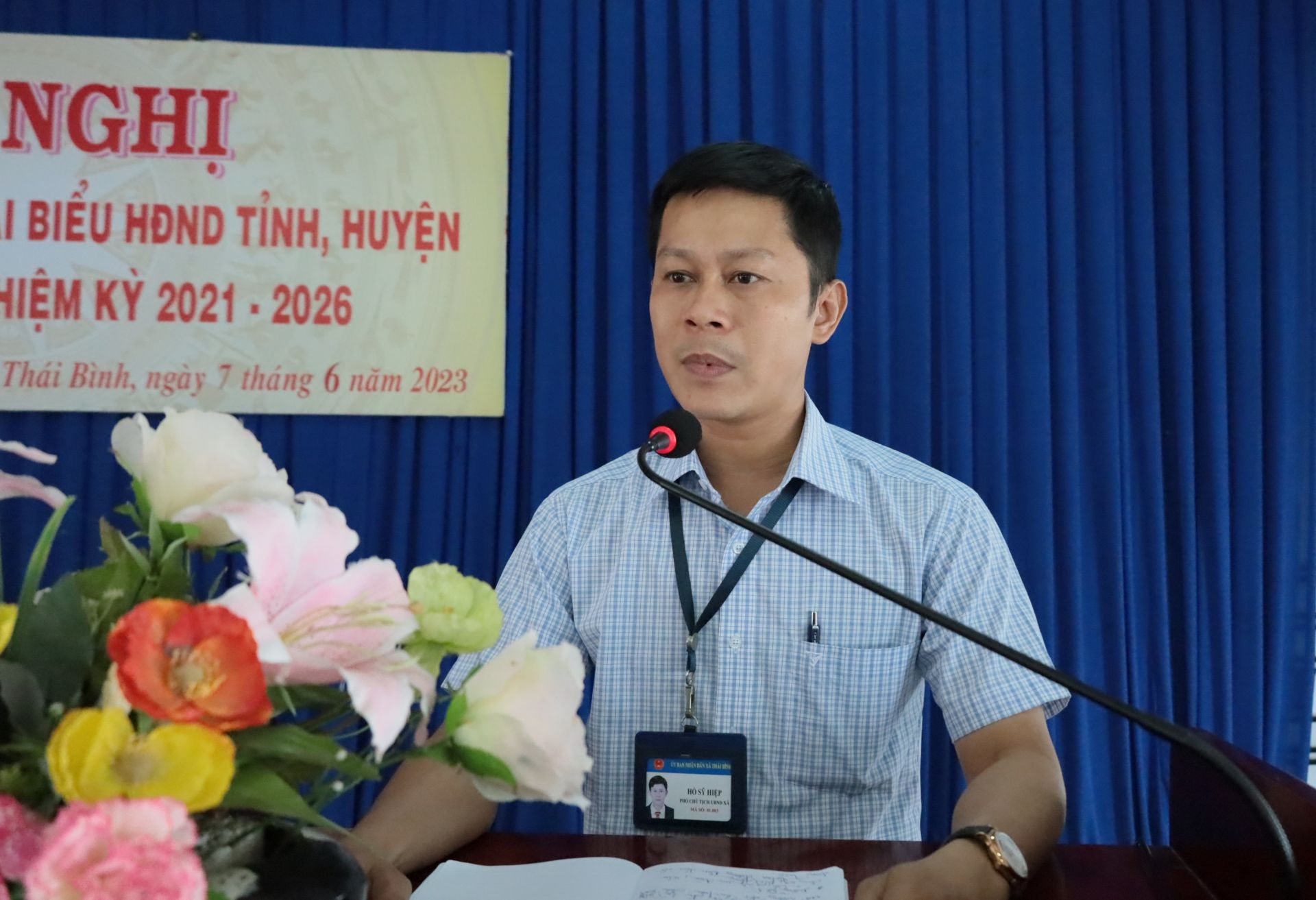 Ông Hồ Sĩ Hiệp – Phó Chủ tịch UBND xã Thái Bình trả lời ý kiến cử tri về những vấn đế thuộc thẩm quyền địa phương.