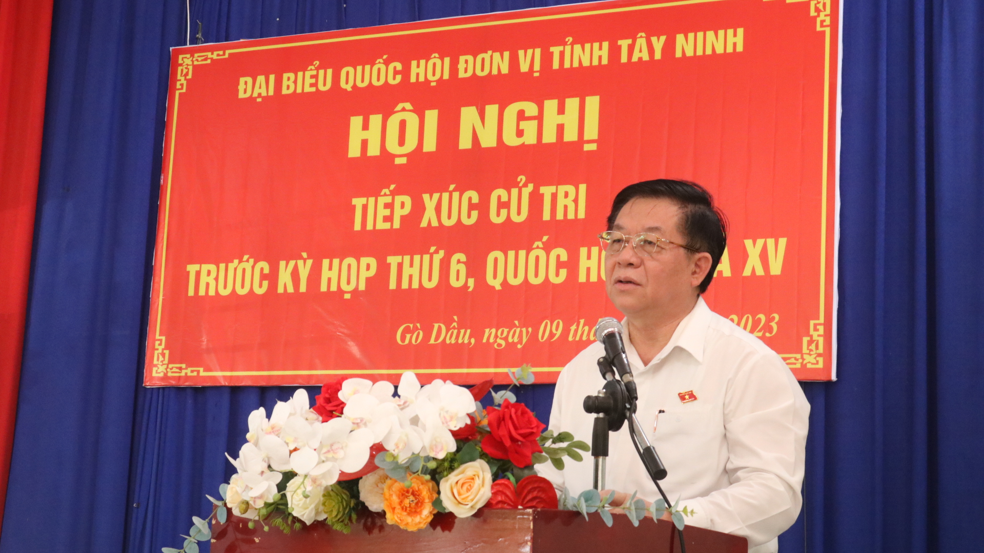 Tại buổi tiếp xúc, ông Huỳnh Thanh Phương- Bí thư Huyện ủy Gò Dầu thông tin về dự kiến nội dung, chương trình kỳ họp thứ 6, Quốc hội khoá XV. Đồng thời, thông báo kết quả trả lời của một số cơ quan Bộ, ngành Trung ương và địa phương đối với những ý kiến, kiến nghị của cử tri trong cuộc tiếp xúc trước.