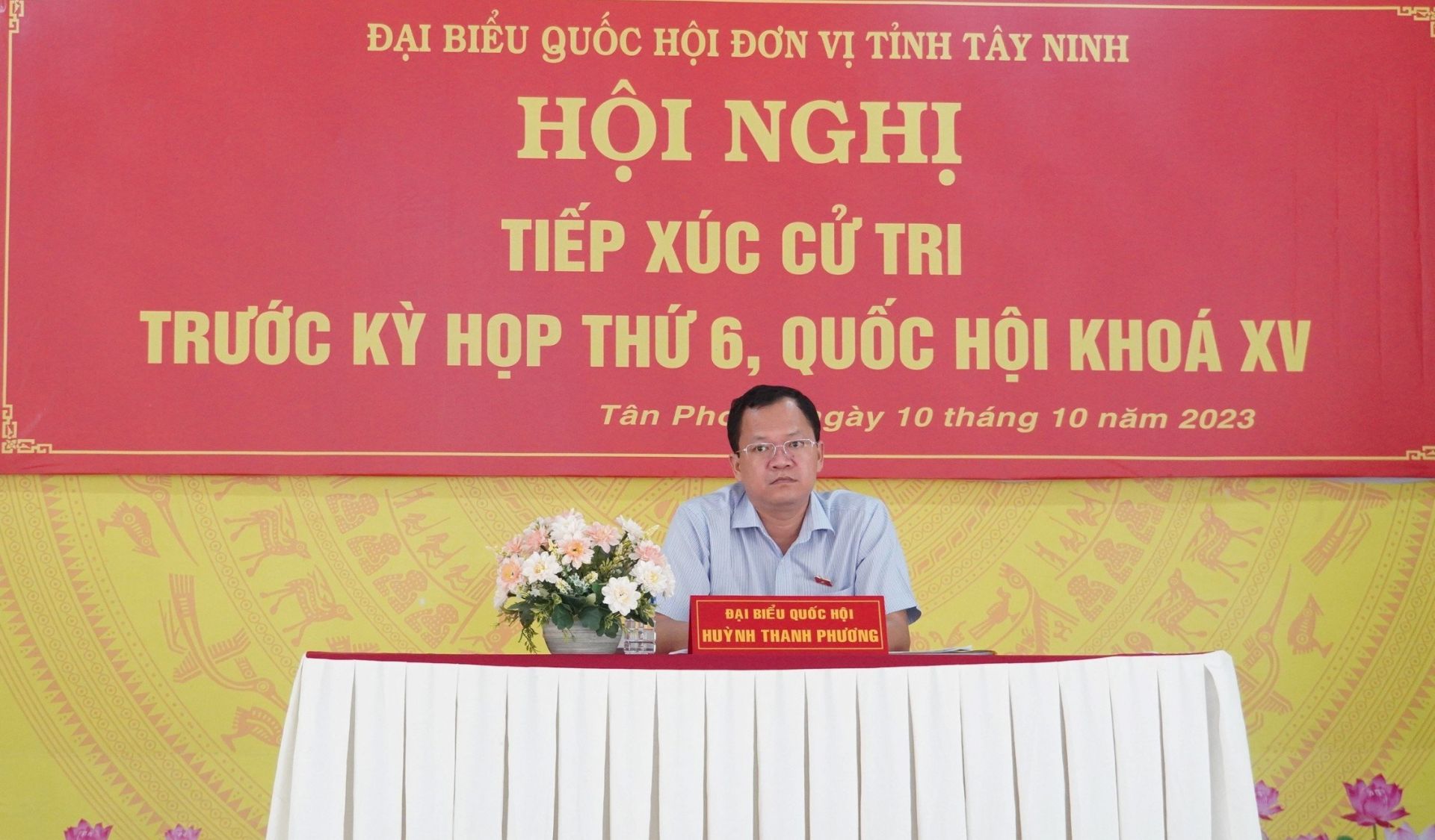 Chiều 10.10, Đại biểu Quốc hội Huỳnh Thanh Phương- Bí thư Huyện uỷ Gò Dầu có buổi tiếp xúc cử tri huyện Tân Biên trước kỳ họp thứ 6, Quốc hội khoá XV.