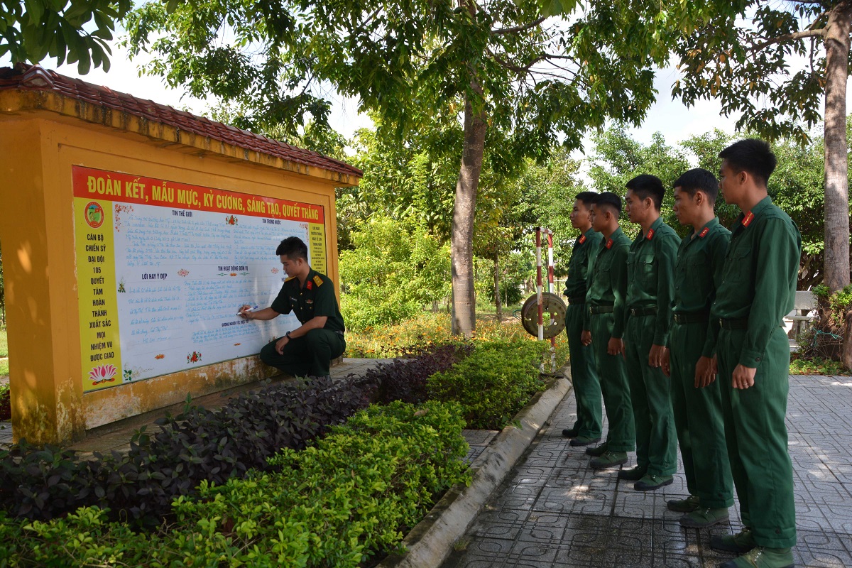 Chiến sĩ Võ Minh Trung- Tiểu đội 3, Trung đội 1, Đại đội 105 tâm sự: “Trước giờ ra thao trường, em đều tranh thủ đọc tin tức trên bản tin đại đội. Mỗi lần thấy tên mình trong danh sách được biểu dương em thấy rất vui, tự hứa sẽ tiếp tục cố gắng để luôn có tên trên bản tin”.