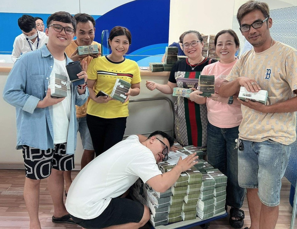 Thậm chí, chị thoải mái chia sẻ hình ảnh, thông tin trúng số độc đắc. Thay vì nhận thưởng qua tài khoản ngân hàng, mọi người xin nhận tiền mặt, xếp vào bao, vác về nhà.