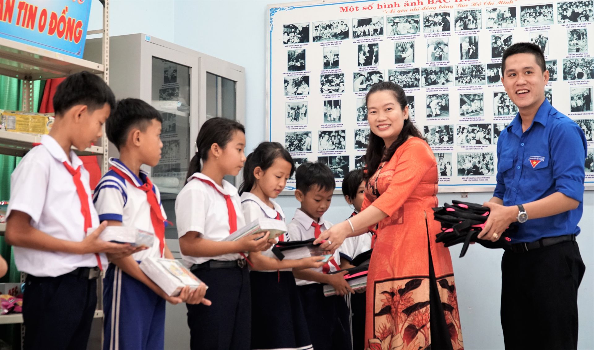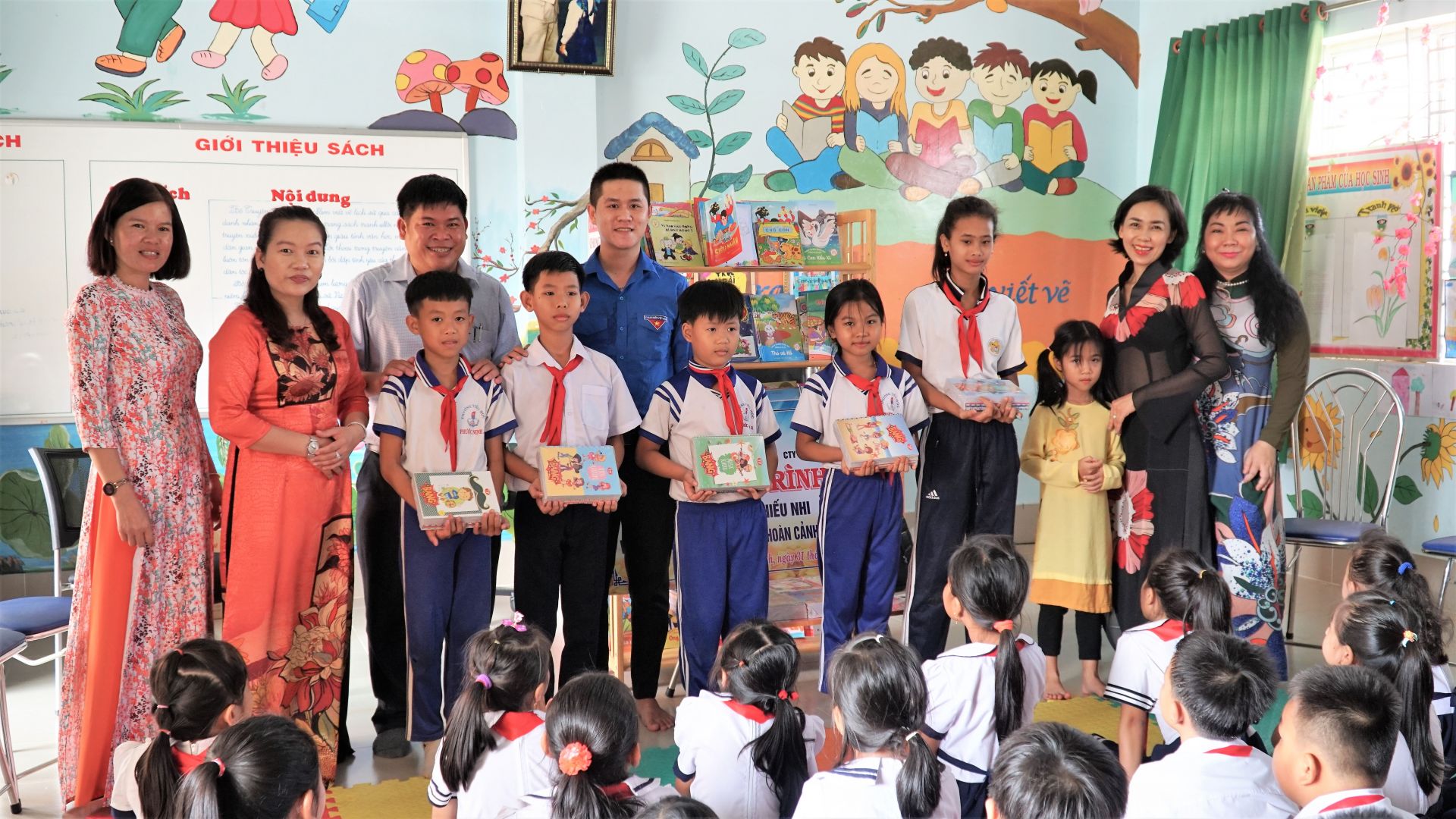 Tặng tủ sách thiếu nhi và quà cho học sinh có hoàn cảnh khó khăn.