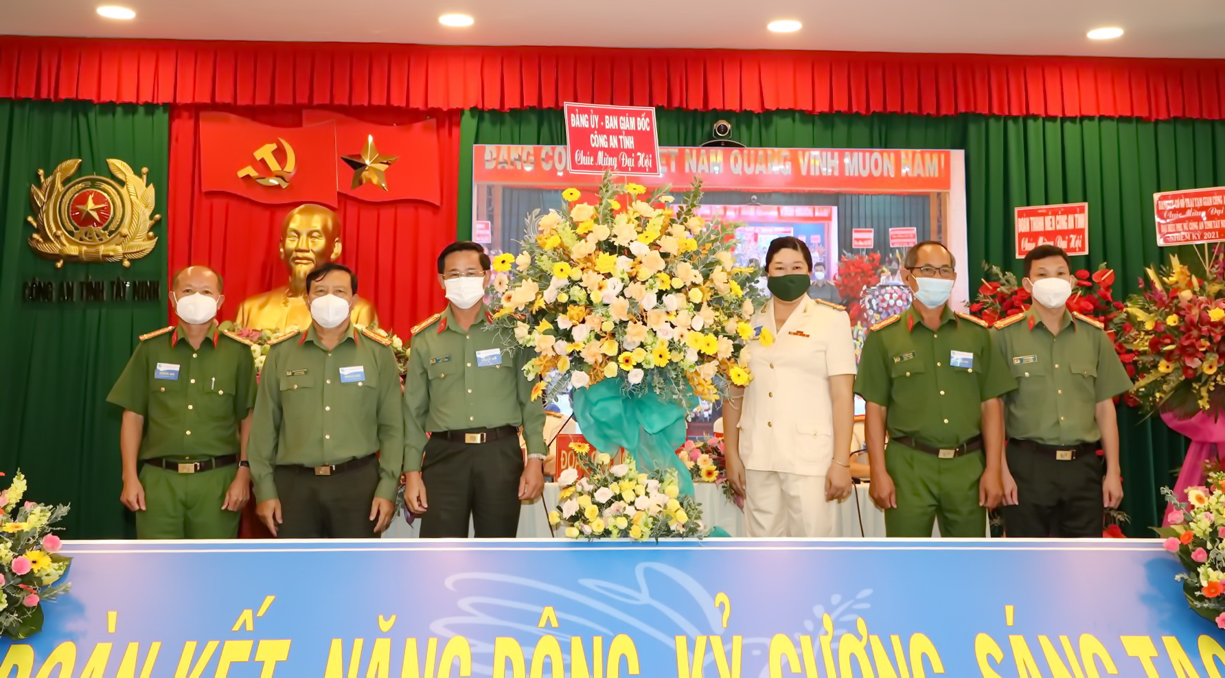 Ban Giám đốc Công an tỉnh tặng hoa chúc mừng Đại hội.